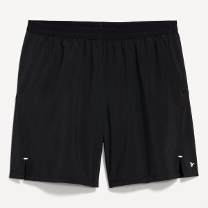Performance Vent Run Shorts — 7-inch inseam: elastic-drawstring waistband, hidden back pocket at waist, diagonal hip pockets, vented sides, built-in briefs, breathable, quick dry, four-way stretch, #693436