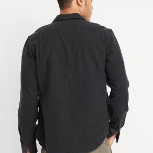 Plaid Flannel Pocket Shirt: spread collar, long sleeves with buttoned cuffs, button-patch chest pockets, full-button front, rounded hem, #801296