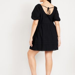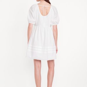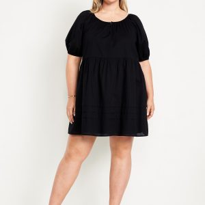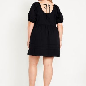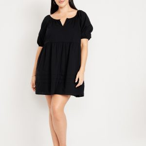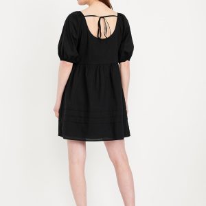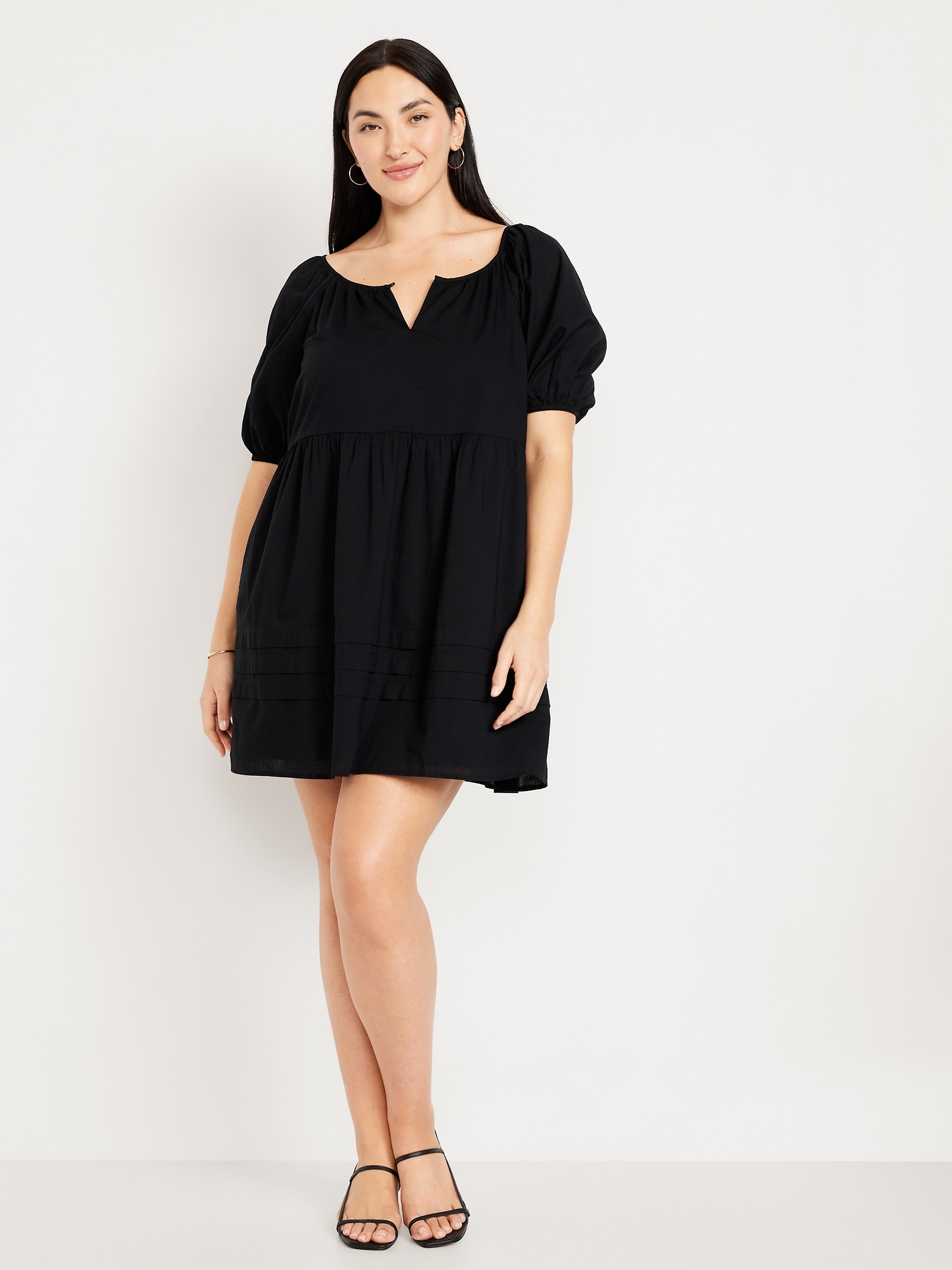 Pleated Mini Swing Dress: split neck with tie-back strap, short raglan sleeves with elastic cuffs, seamed shirred waist, pleated hem, fully lined, #766915