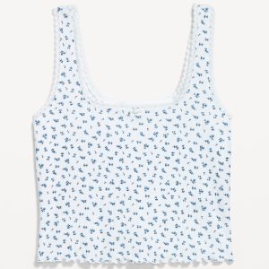 Pointelle Cropped Pajama Tank Top: ruffle-trim scoop neck, wide straps, lettuce-edge hem, #707474