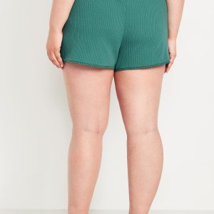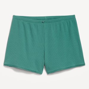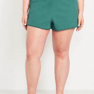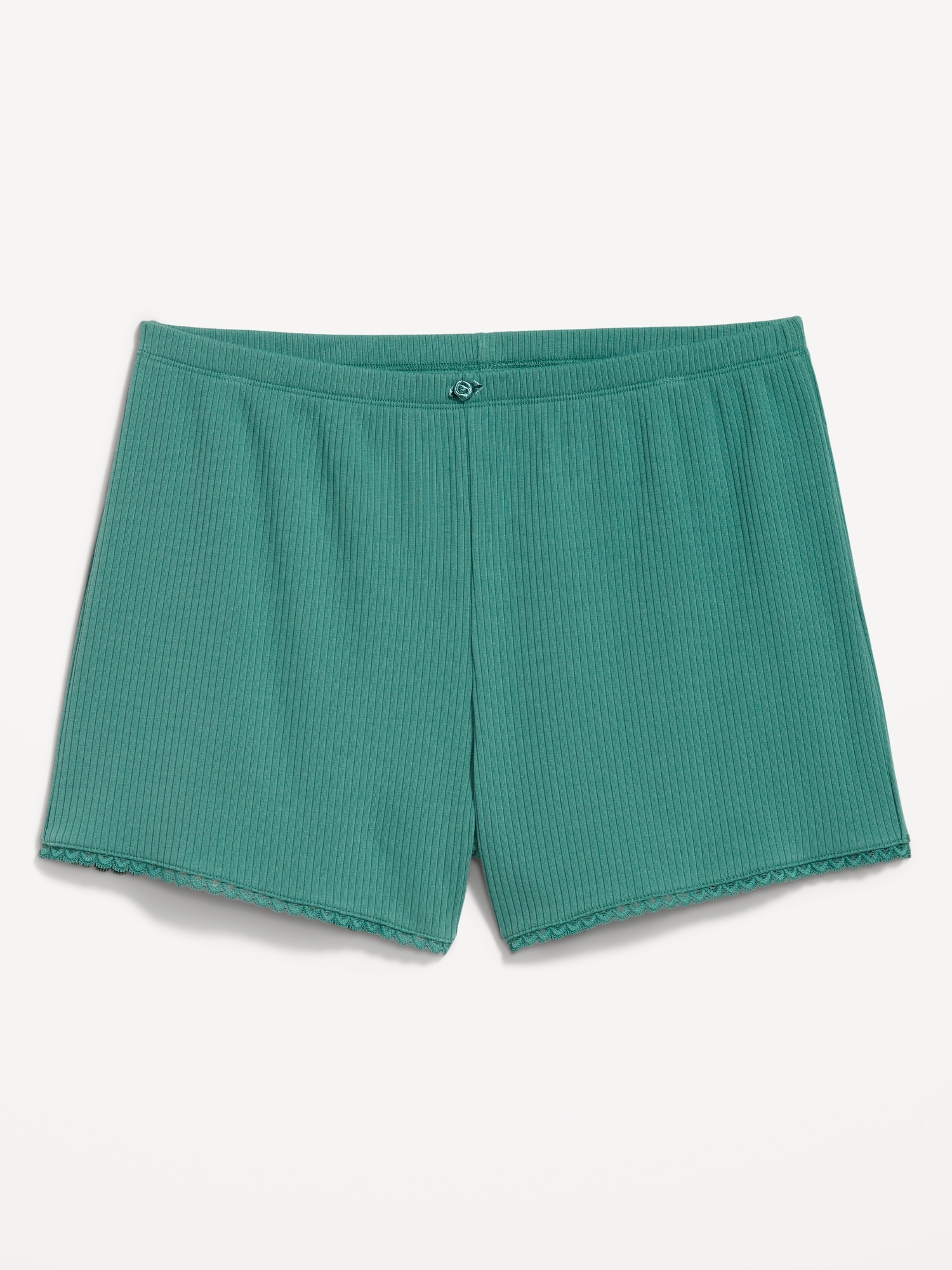 Pointelle Pajama Shorts: elasticized waistband, lace-trim hem, #707458