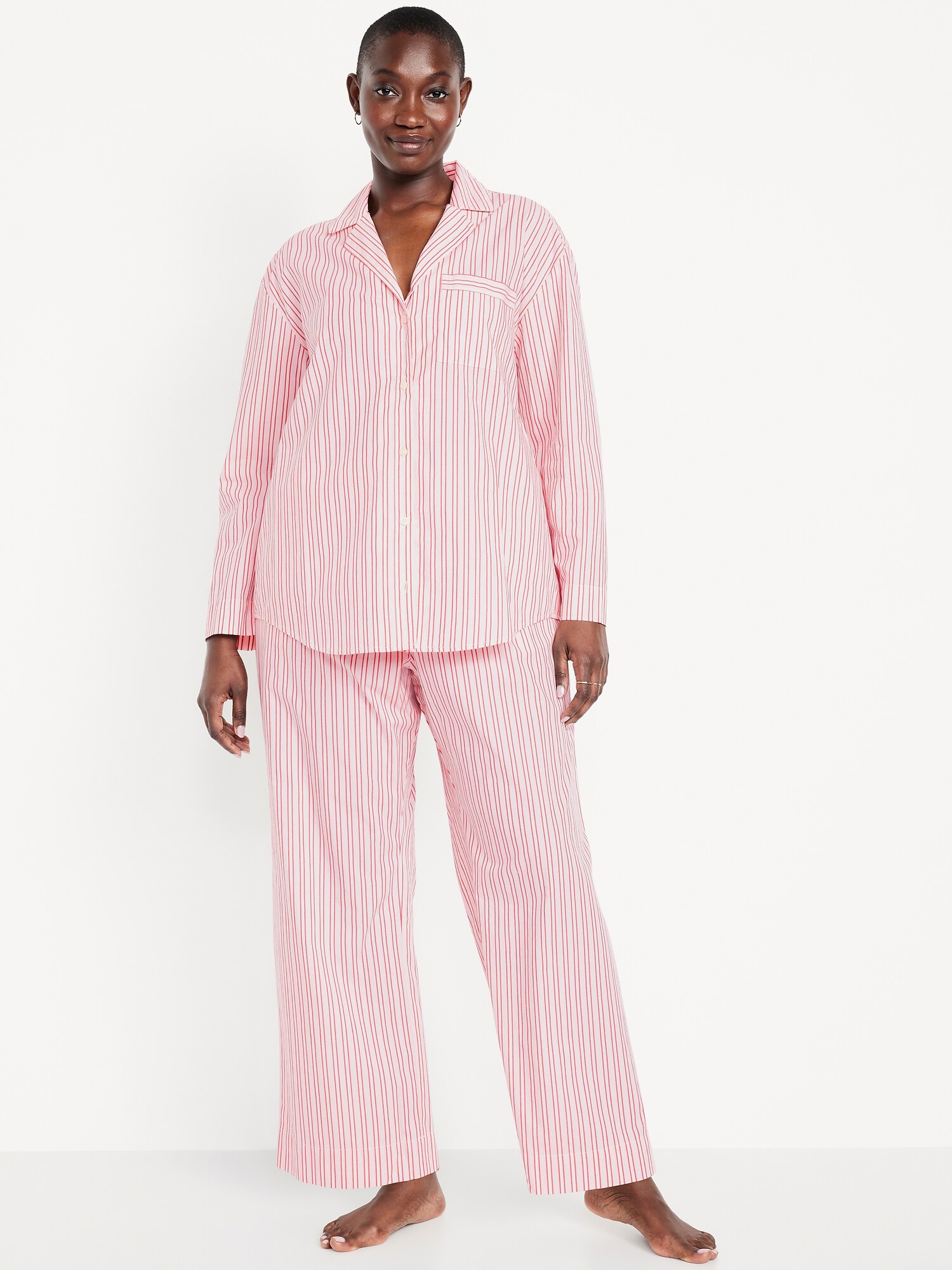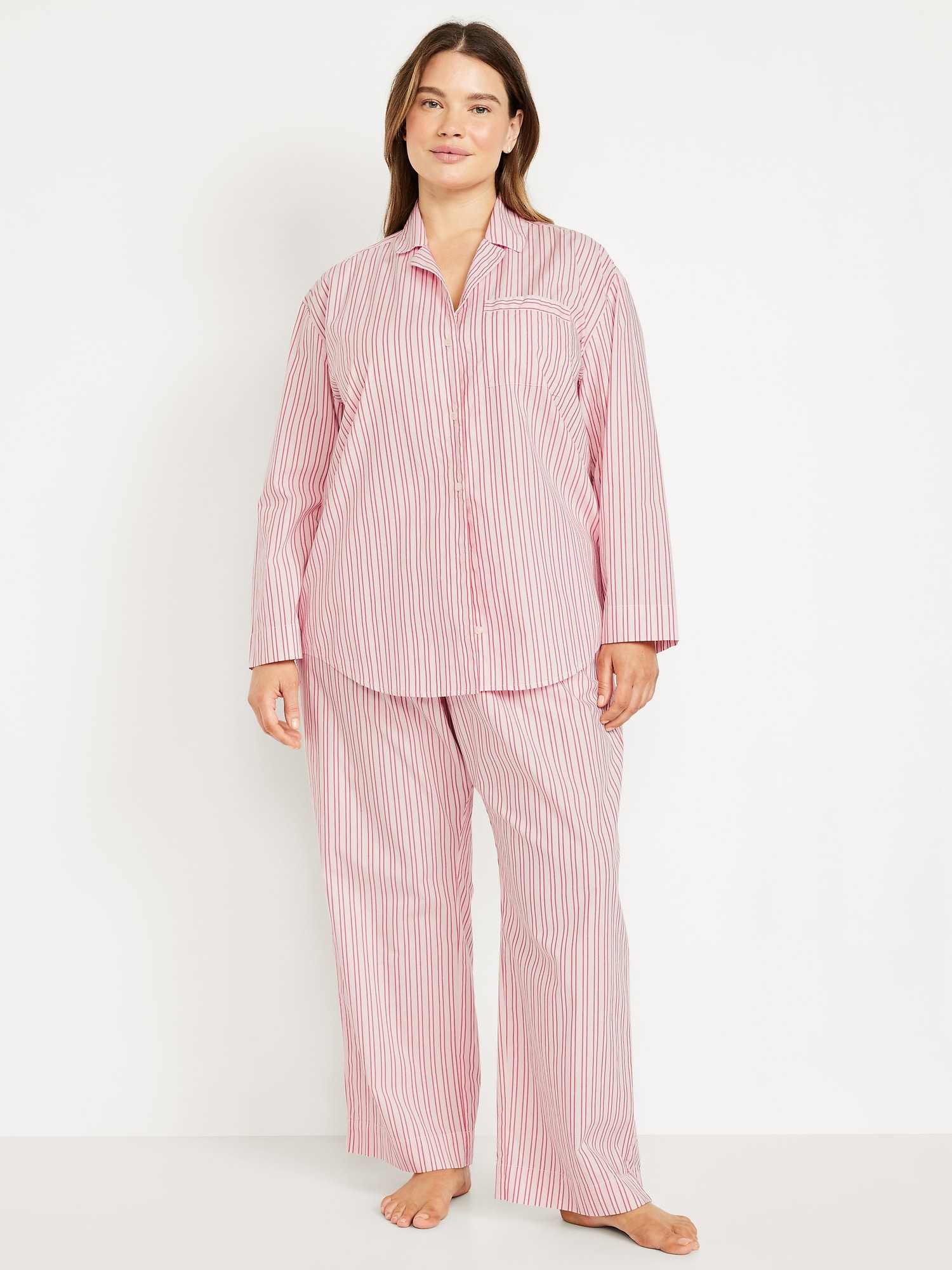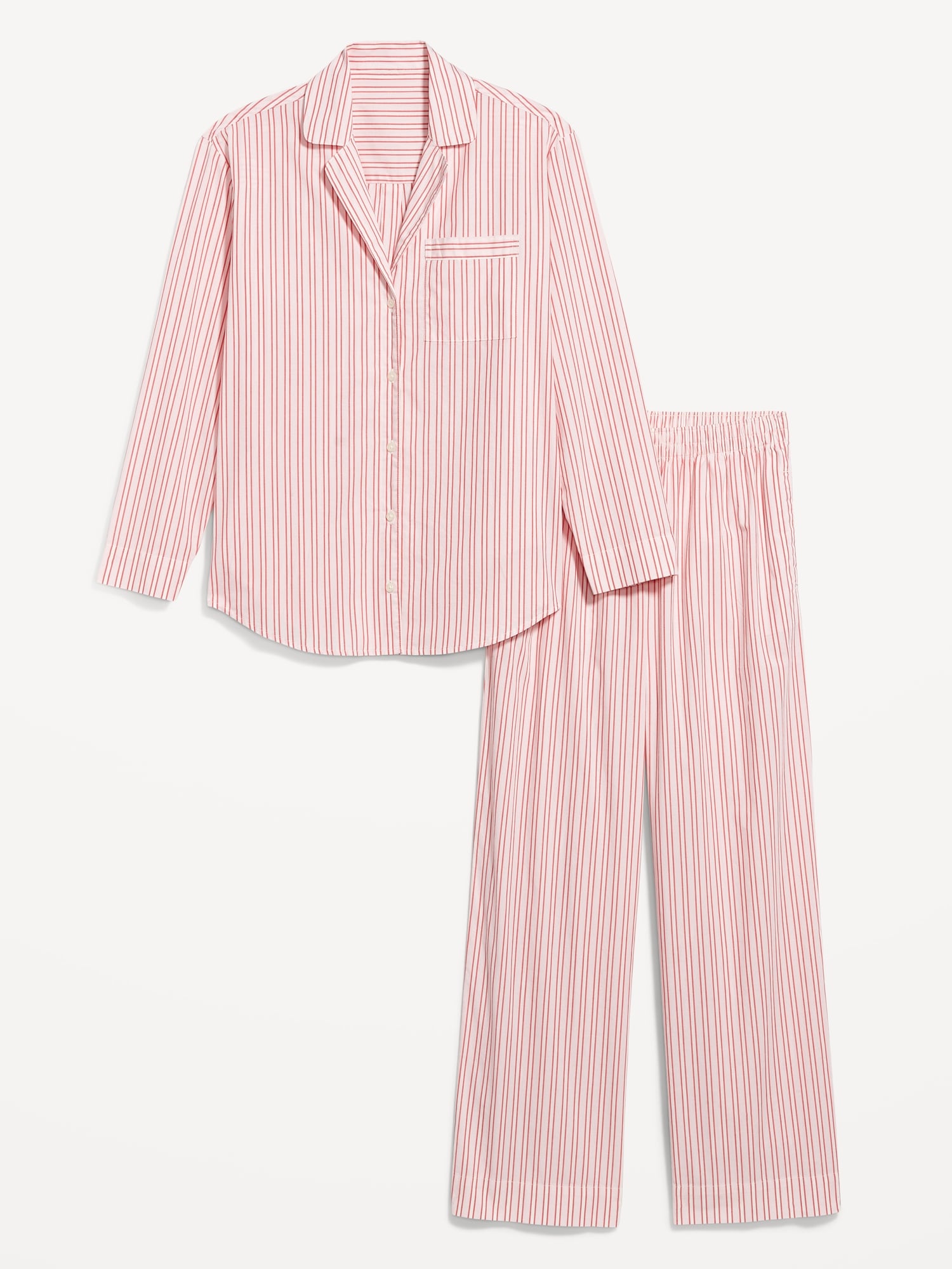 Poplin Pajama Pant Set: Crisp, breathable cotton that’s classic for a reason.set includes pajama shirt and matching bottoms, spread collar, long sleeves, buttoned front, patch chest pocket, elastic-waist pajama pants, decorative button fly, on-seam pockets, all-over print varies, #889047
