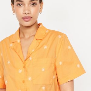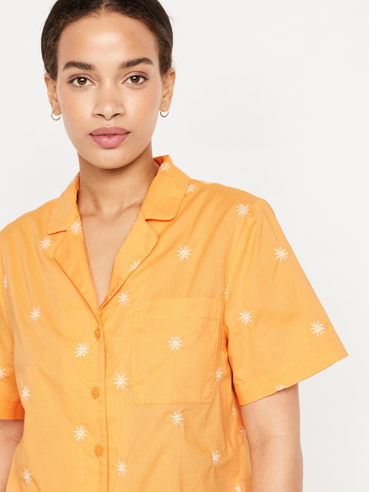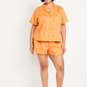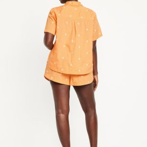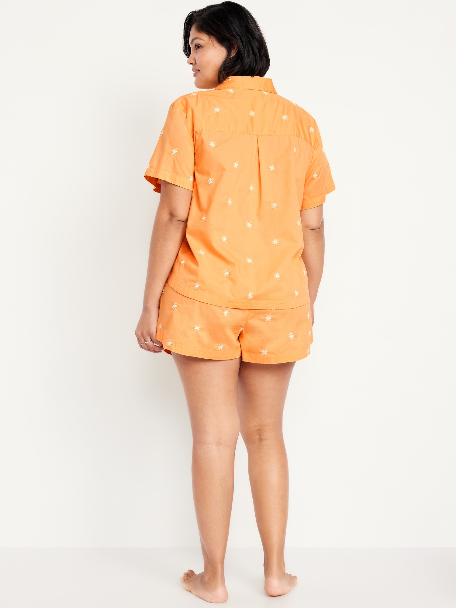 Poplin Pajama Short Set: Crisp, breathable cotton that’s classic for a reason.set includes sleep shirt and matching boxer shorts, notched collar, short sleeves, button front, patch chest pocket, elastic-waist shorts, #707439