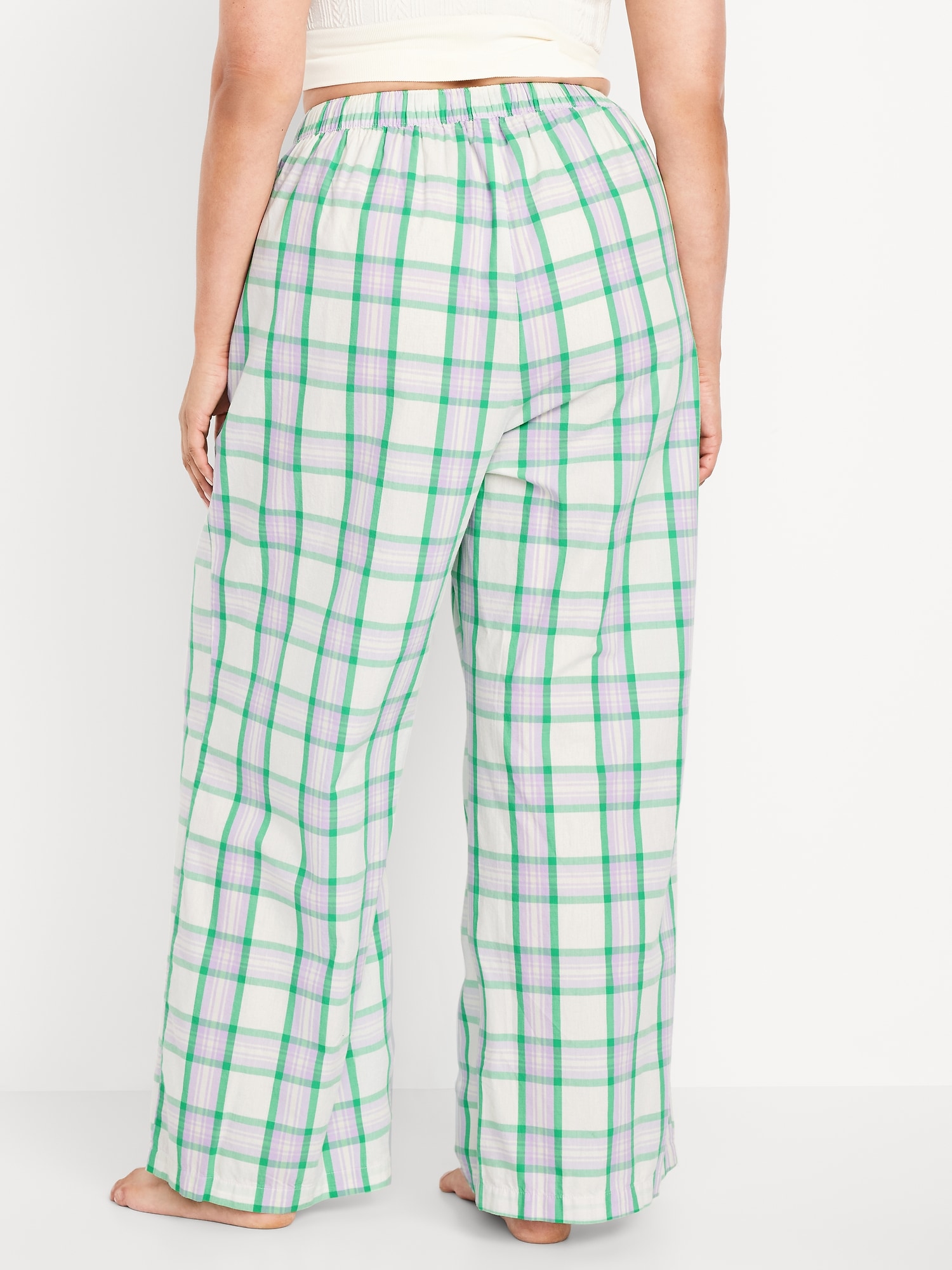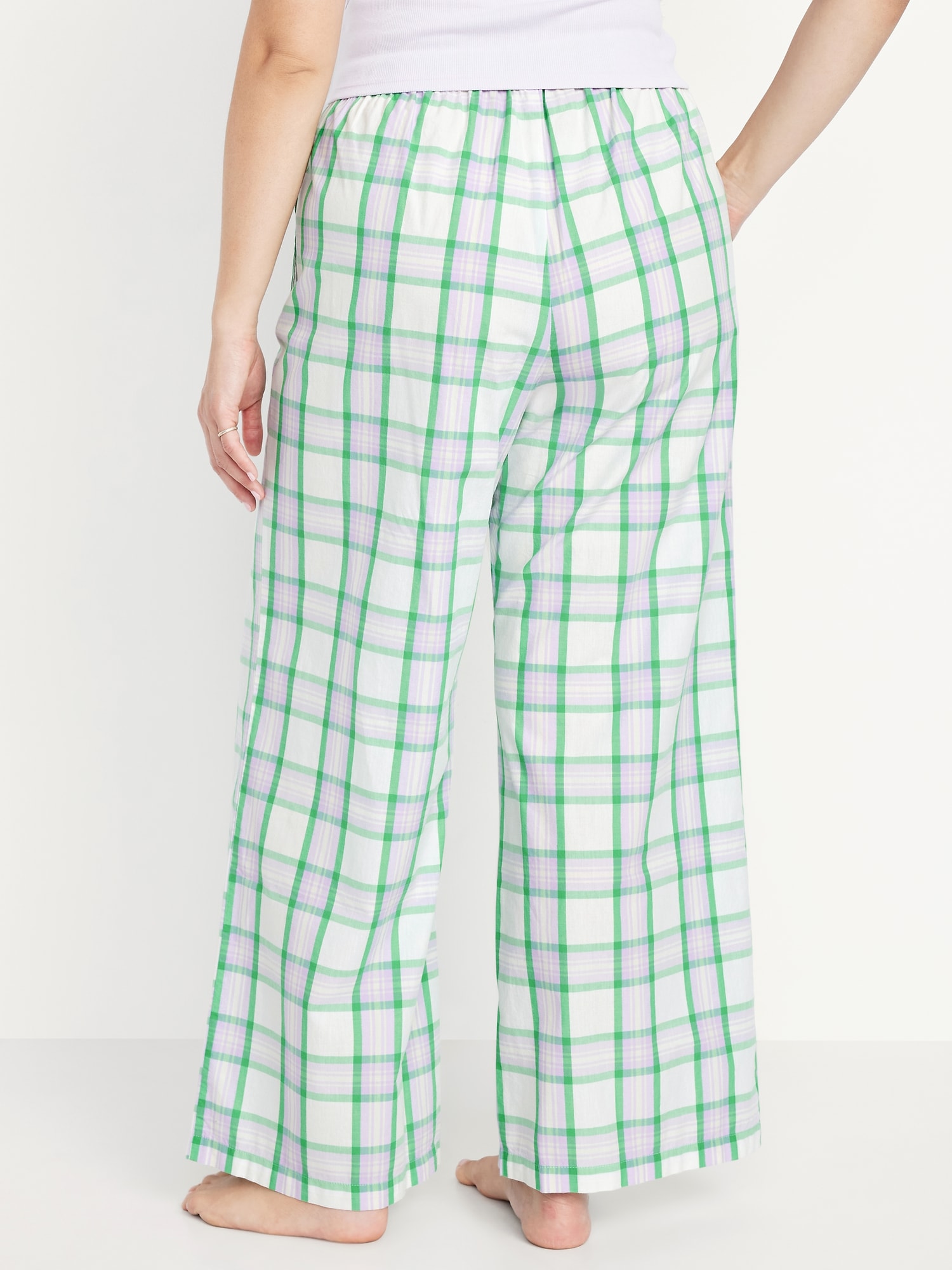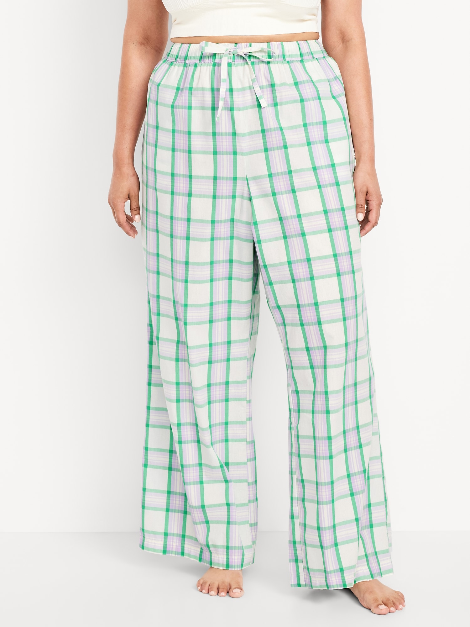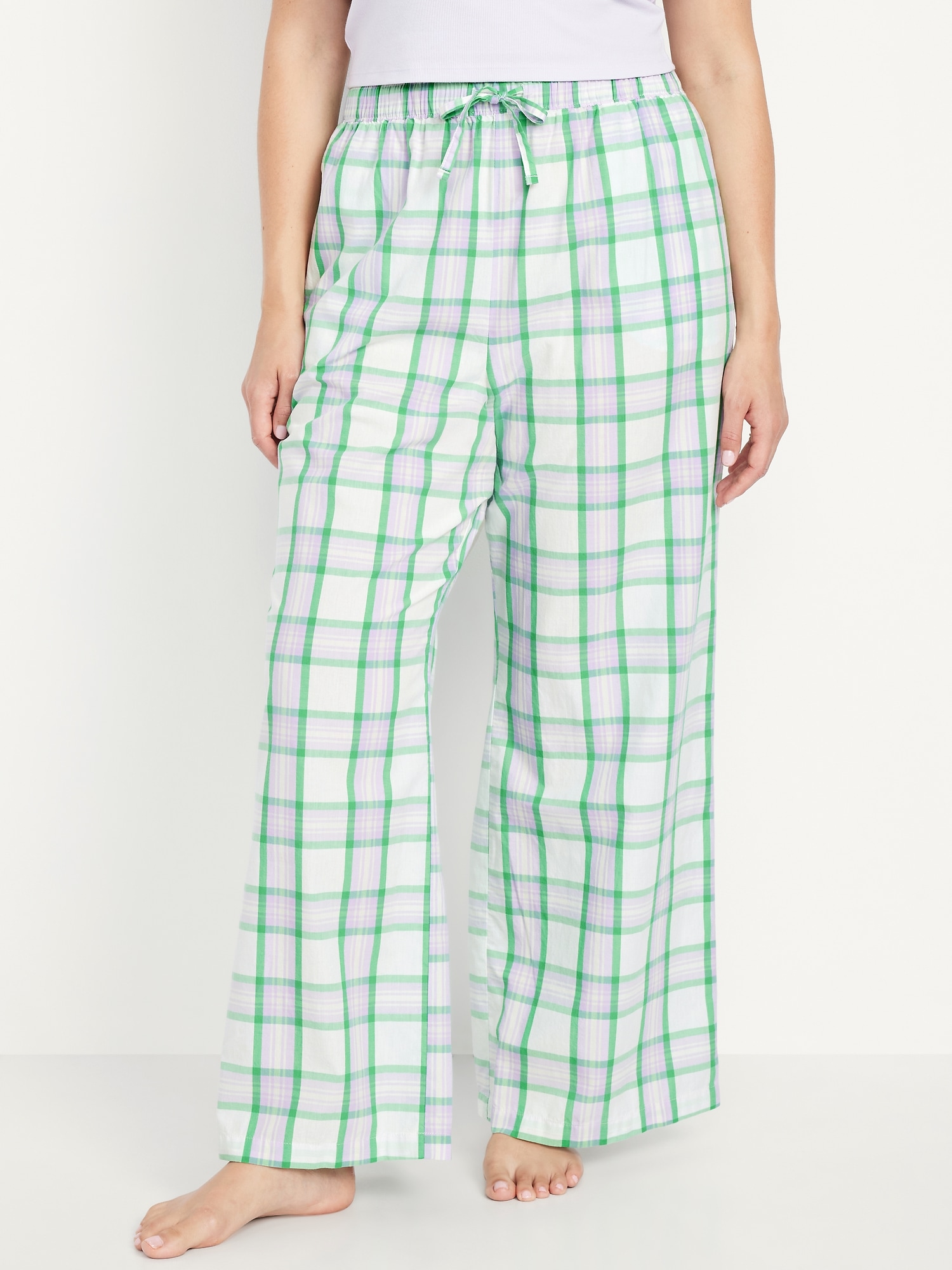 Poplin Wide-Leg Pajama Pants: Crisp, breathable cotton that’s classic for a reason.elastic-drawstring waistband, on-seam side pockets, plaid print, #798467