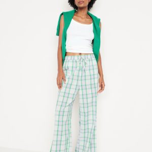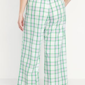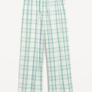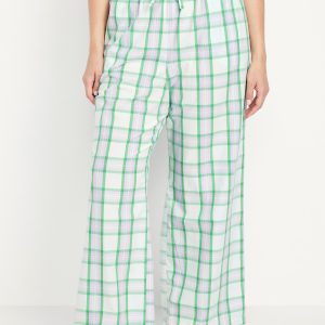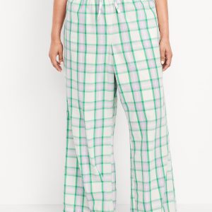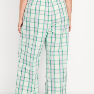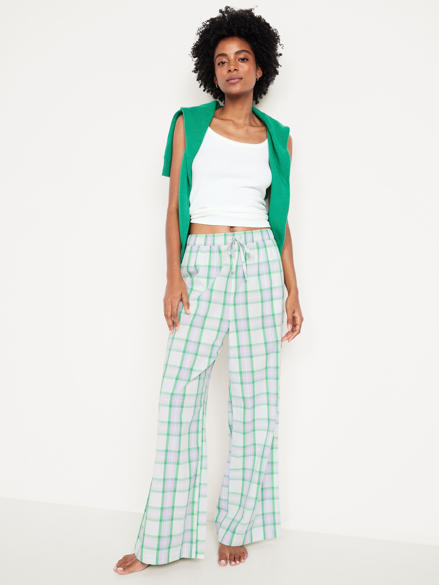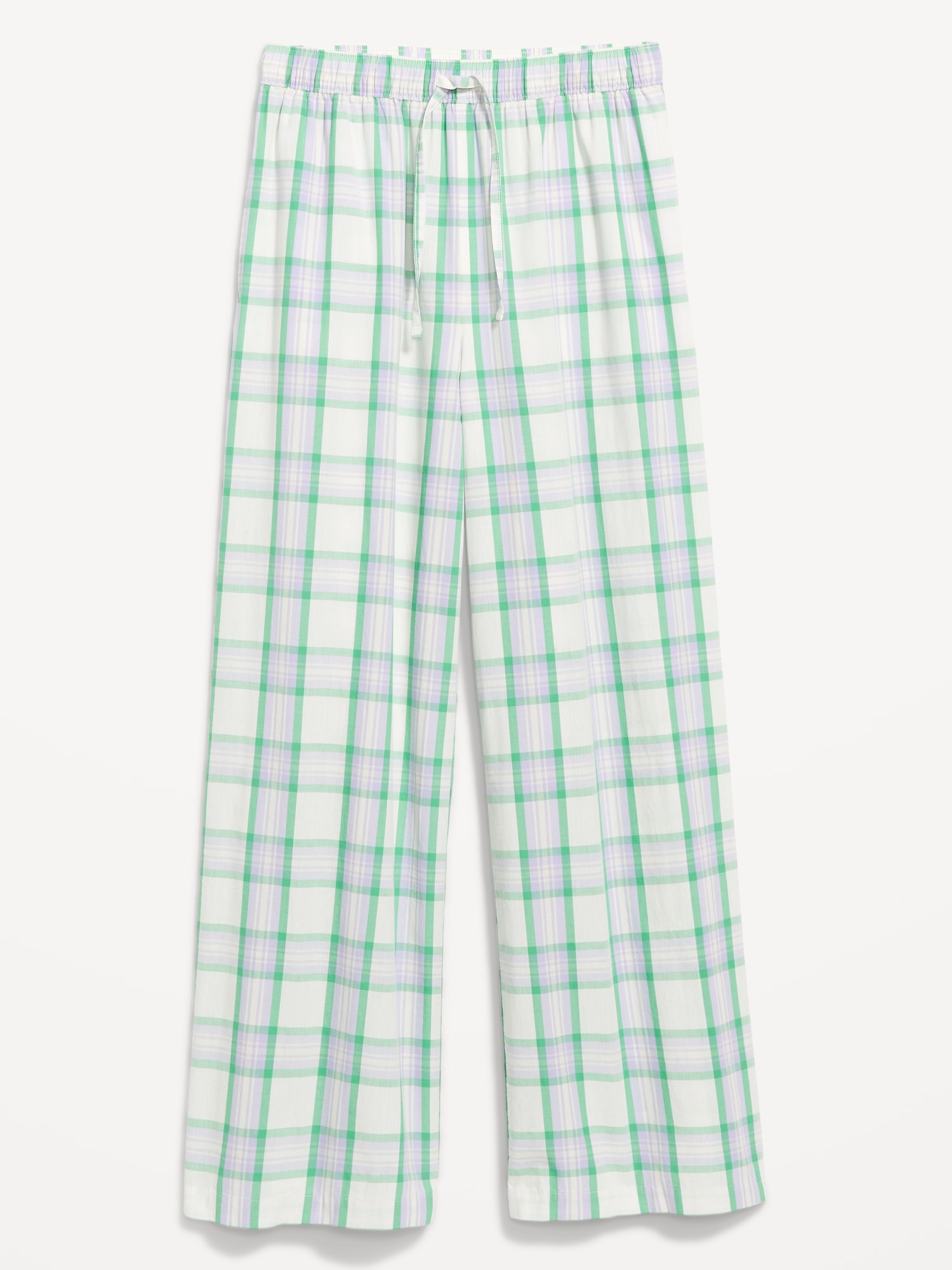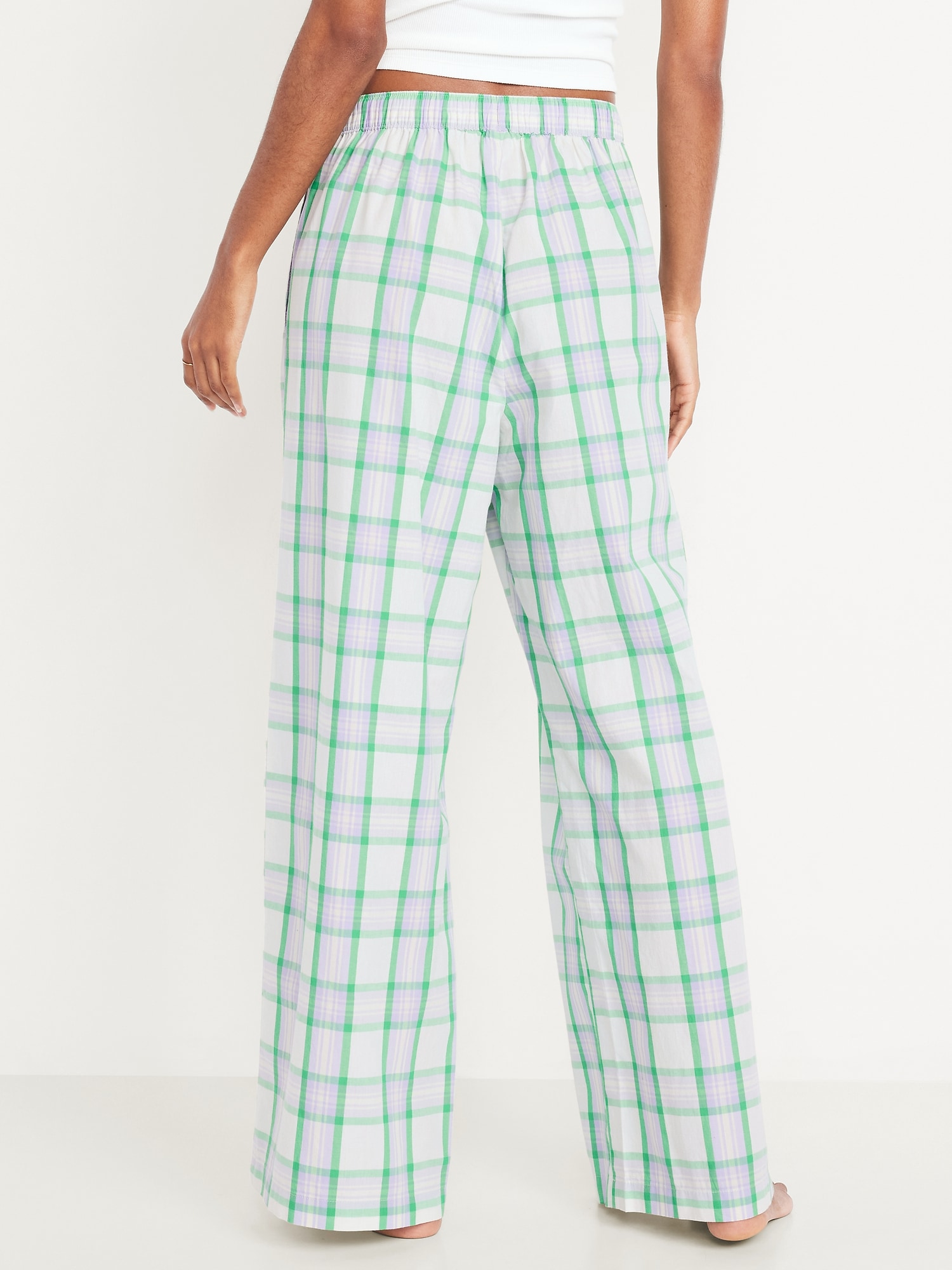 Poplin Wide-Leg Pajama Pants: Crisp, breathable cotton that’s classic for a reason.elastic-drawstring waistband, on-seam side pockets, plaid print, #798467