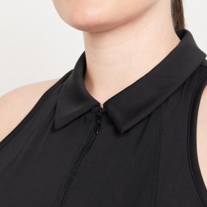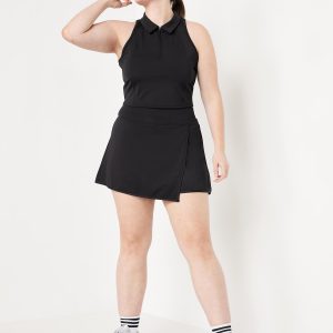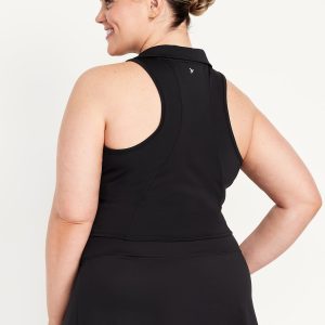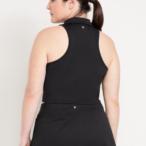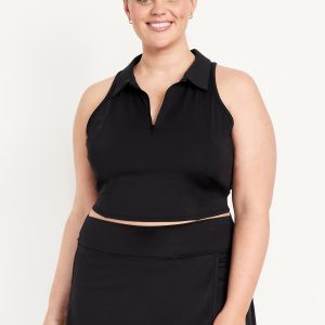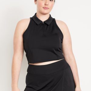 PowerSoft Crop Polo: Featuring PowerSoft. Light compression meets a peachy-smooth, sweat-wicking fabric.spread collar, half-zip front, sleeveless, racerback, go-dry wicks moisture, #848782