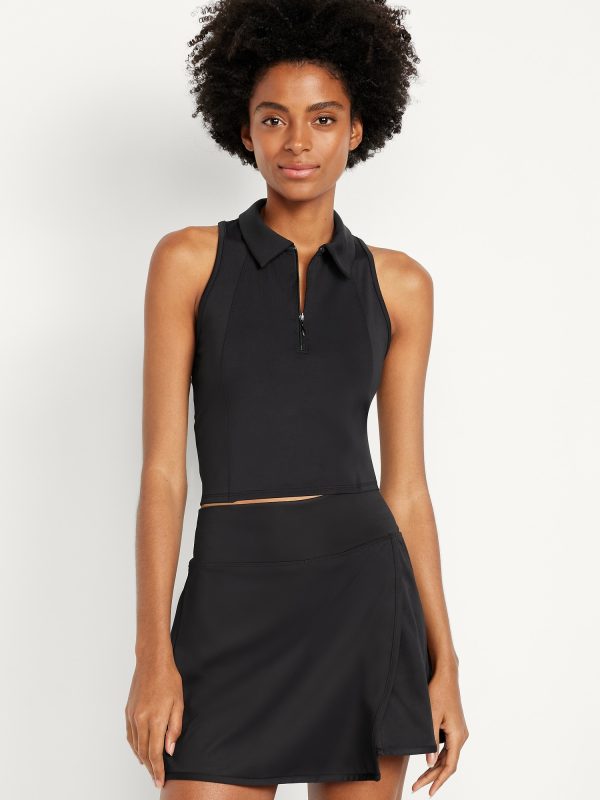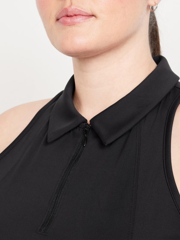 PowerSoft Crop Polo: Featuring PowerSoft. Light compression meets a peachy-smooth, sweat-wicking fabric.spread collar, half-zip front, sleeveless, racerback, go-dry wicks moisture, #848782