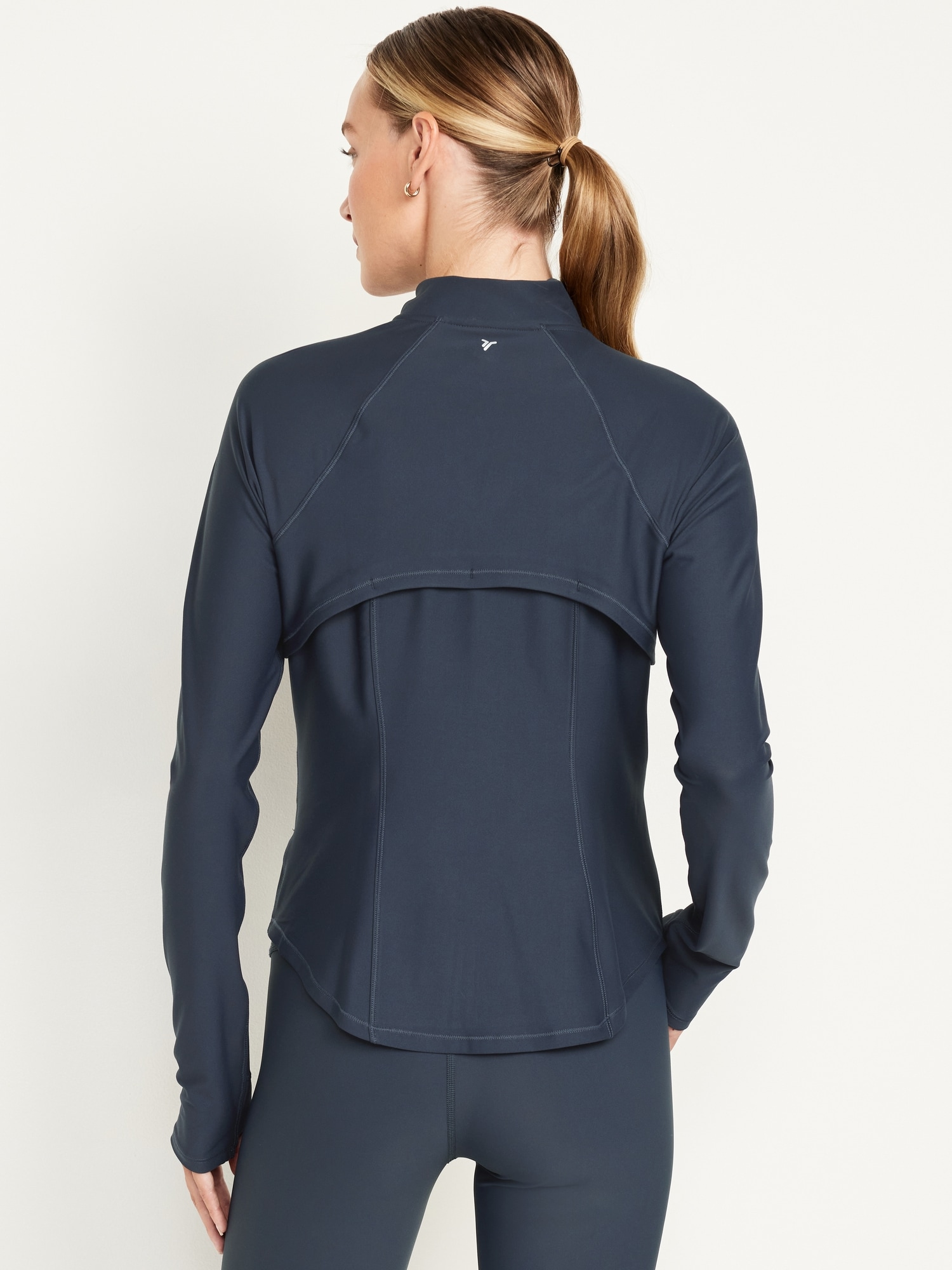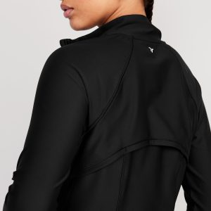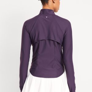 PowerSoft Full Zip: Featuring PowerSoft. Light compression meets a peachy-smooth, sweat-wicking fabric.mock neck, long sleeves, thumbhole cuffs, full-zip front, zip pockets, go-dry wicks moisture, #724598