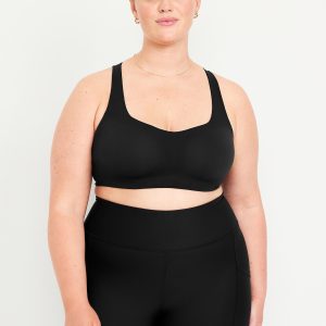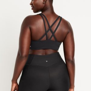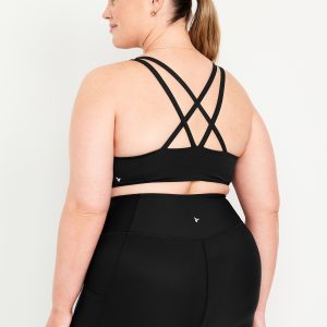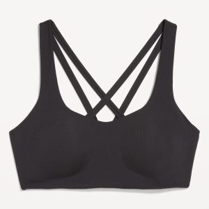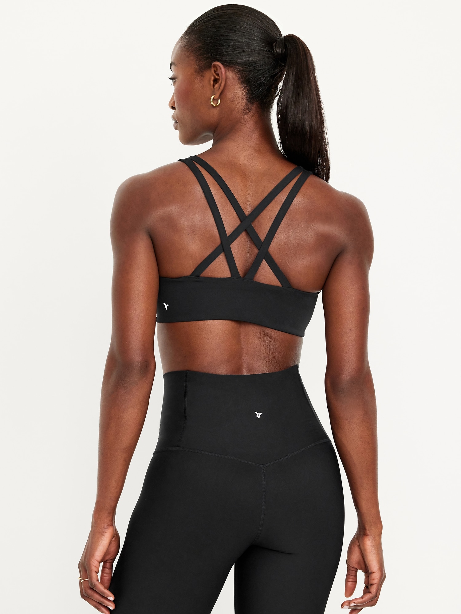 PowerSoft Molded Cup Strappy Sports Bra: Featuring PowerSoft. Light compression meets a peachy-smooth, sweat-wicking fabric.v-neck, wide straps, molded pads, contoured-elastic banded hem, strappy back, go-dry wicks moisture, #569809