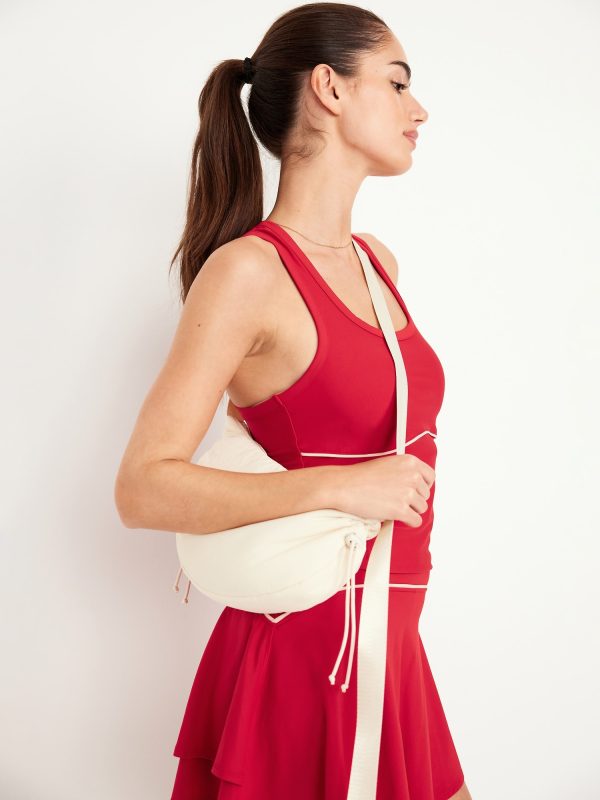 PowerSoft Racerback Cropped Shell Tank: Featuring PowerSoft. Light compression meets a peachy-smooth, sweat-wicking fabric.scoop neck, wide straps, racerback, contrasting piping, go-dry wicks moisture, #749263