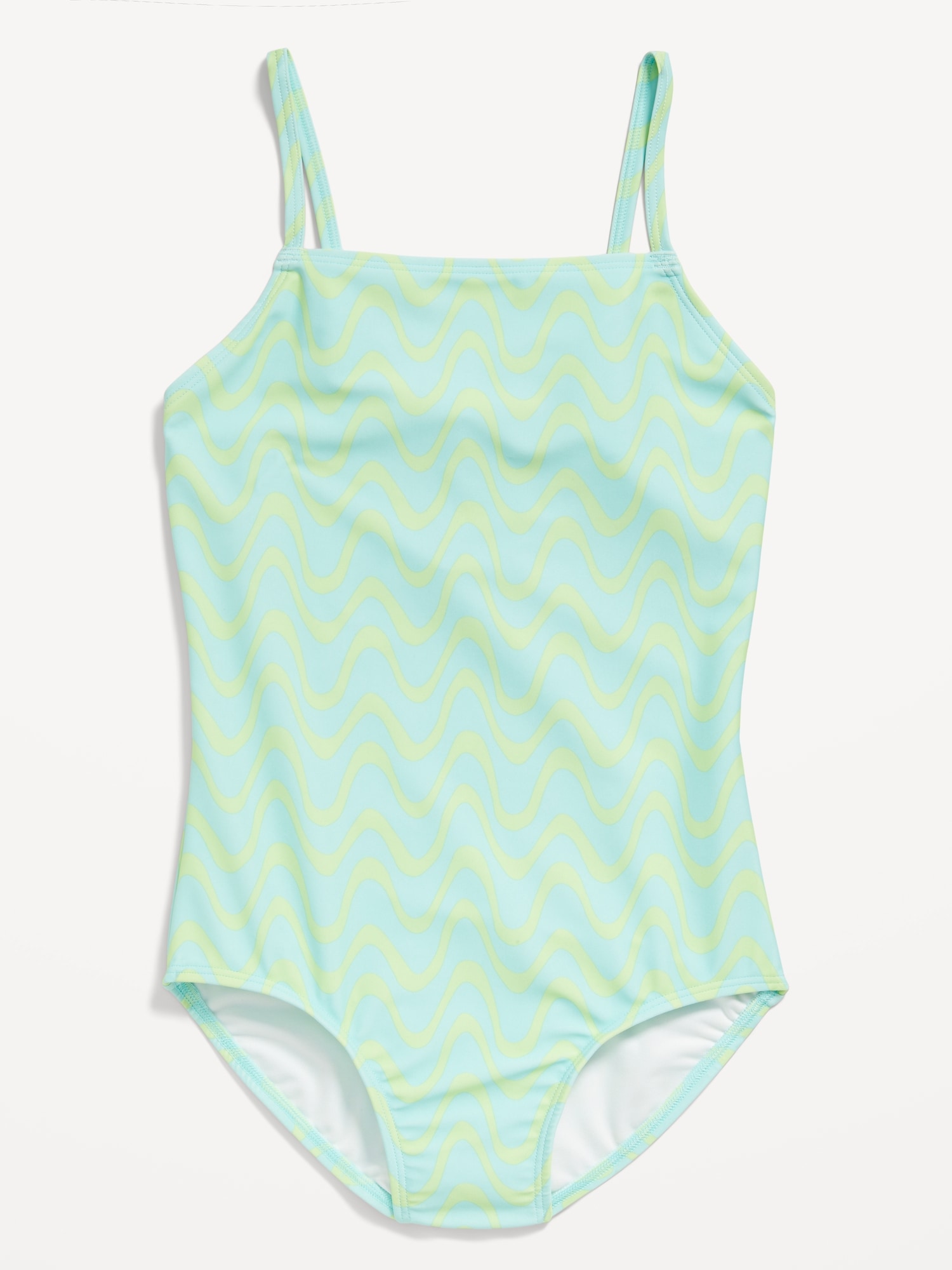 Printed Back Cutout One-Piece Swimsuit for Girls: square neckline, adjustable straps, deep cutout at back, all-over print, #660299
