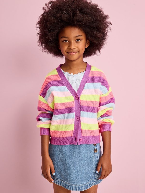 Printed Button-Front Cardigan Sweater for Girls