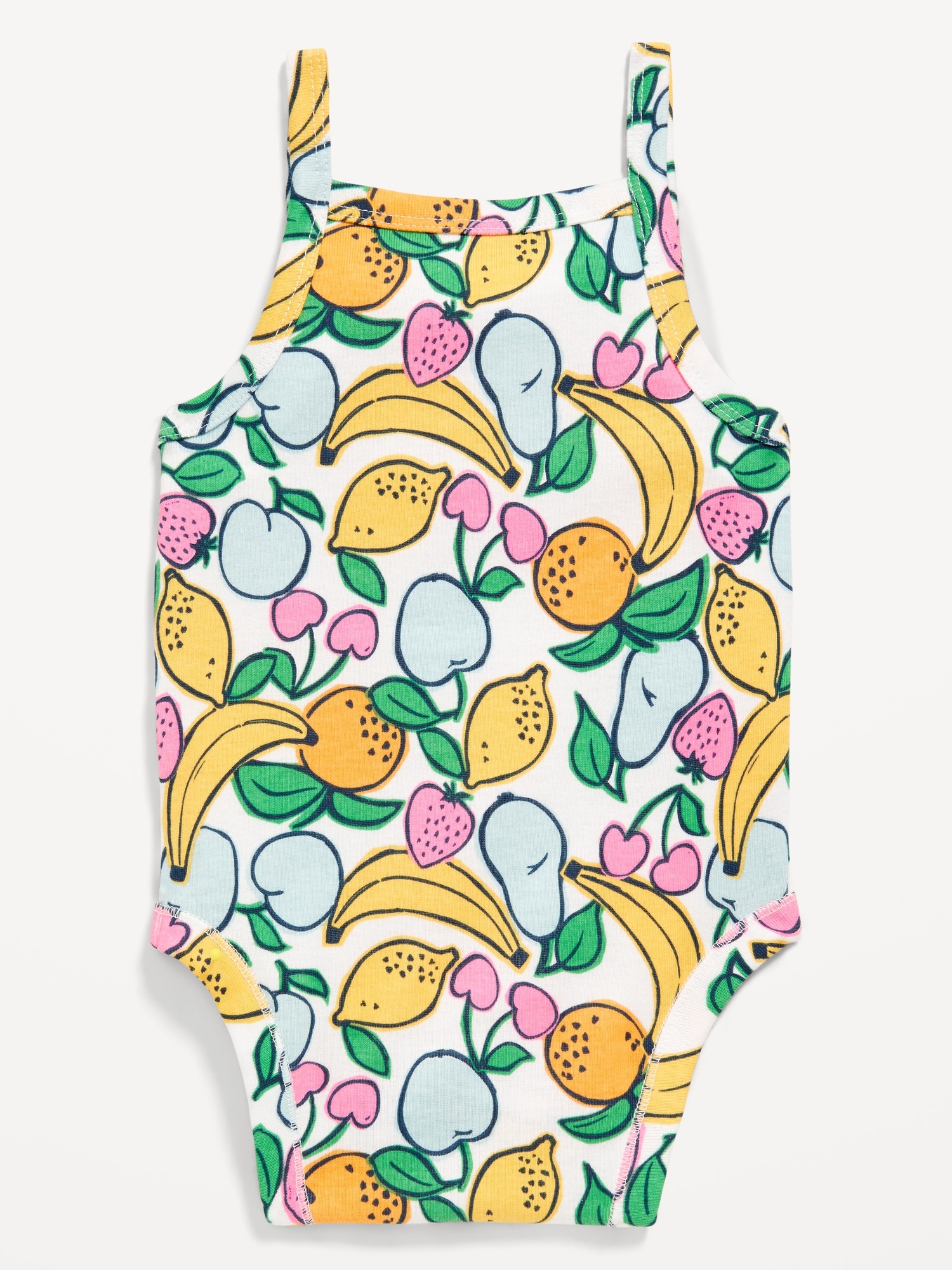 Printed Cami Bodysuit for Baby: square neckline, thin cami straps, snaps along inseam, all-over print, #762255