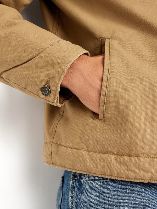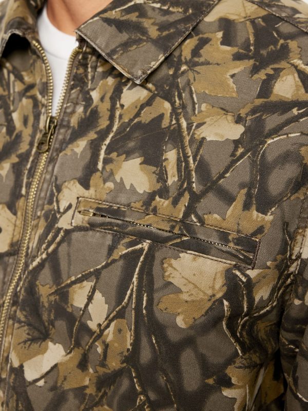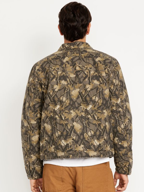 Printed Canvas Barn Jacket: spread collar, long sleeves, full-zip front, zip-welt chest pocket, vertical welt pockets, all-over print, fully lined, #800306