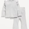 Printed Cozy Rib-Knit Ruffled Top and Pants Set for Baby