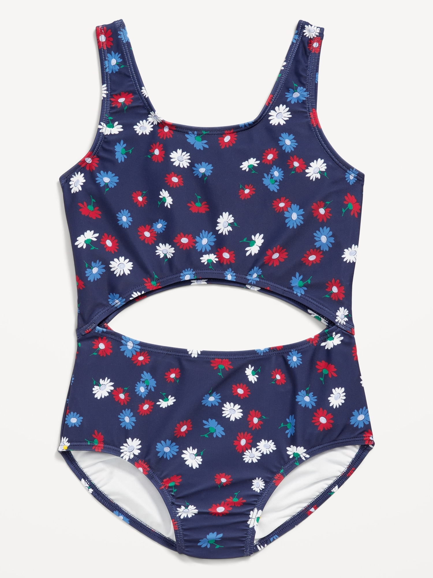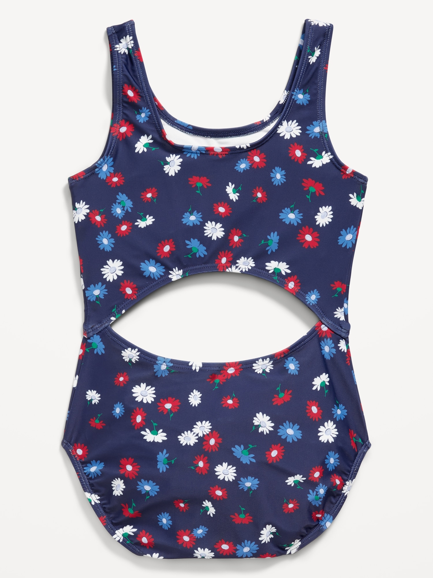 Printed Cutout One-Piece Swimsuit for Girls: scoop neckline, wide straps, dome-shape cutout at front and back, #691891