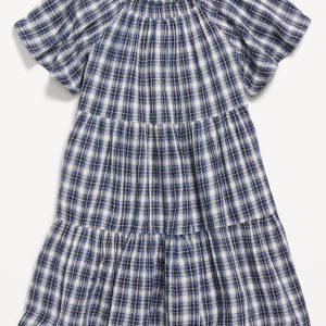 Printed Flutter-Sleeve Double-Weave Tiered Swing Dress for Girls
