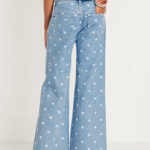 Printed High-Waisted Baggy Wide-Leg Jeans for Girls: The it fits she really, really wants.interior adjustable waistband, snap button closure (sizes 5-8), regular button closure (sizes 10-20), zip fly, scoop pockets and coin pocket, patch pockets at back, wide leg opening, #803677