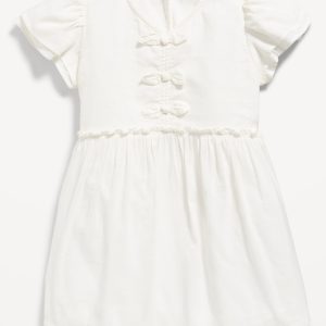 Printed Jersey-Knit Short-Sleeve Dress for Toddler Girls: crew neck, ruffled short sleeves, seamed waist, all-over print, #812641