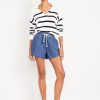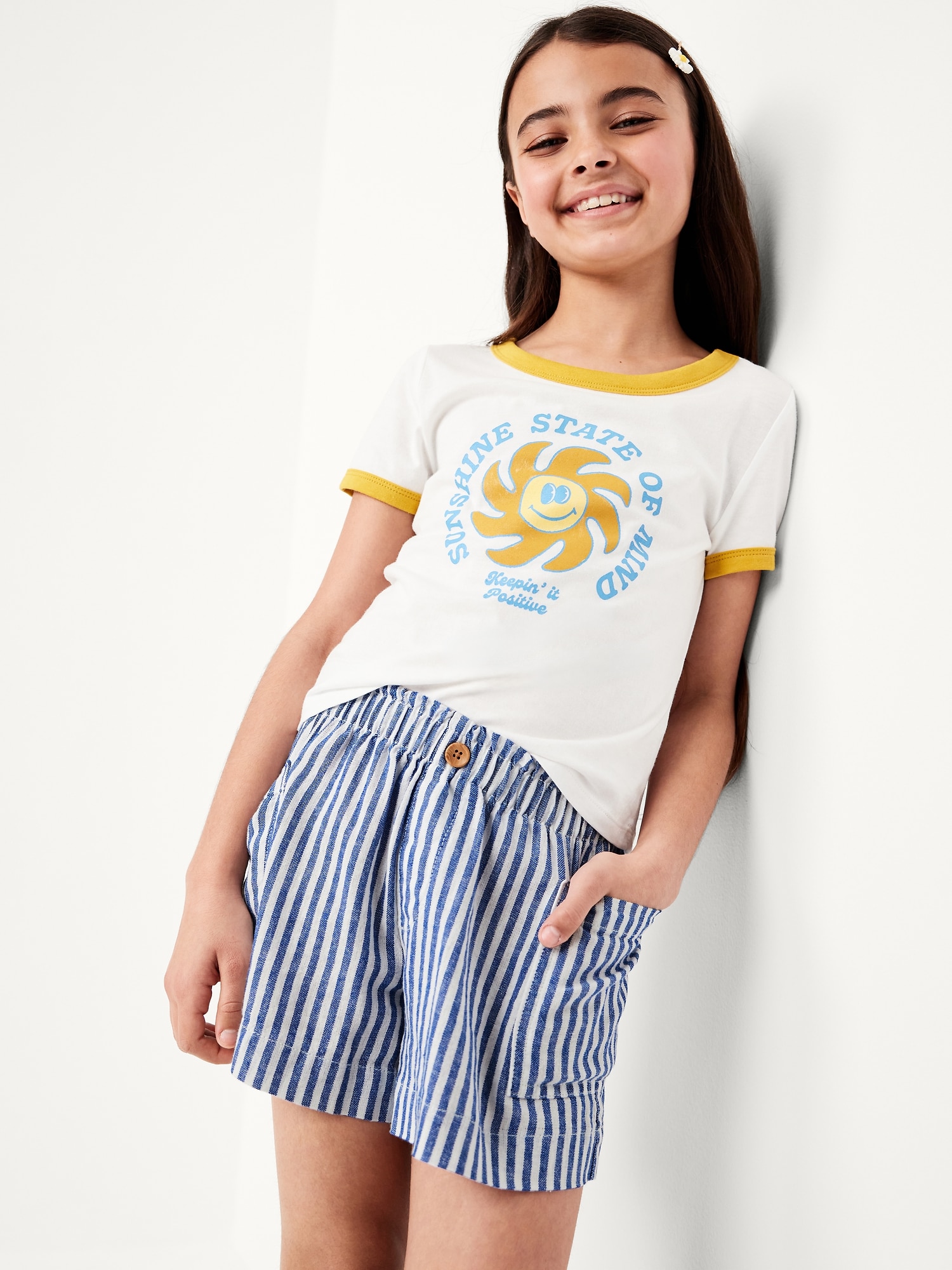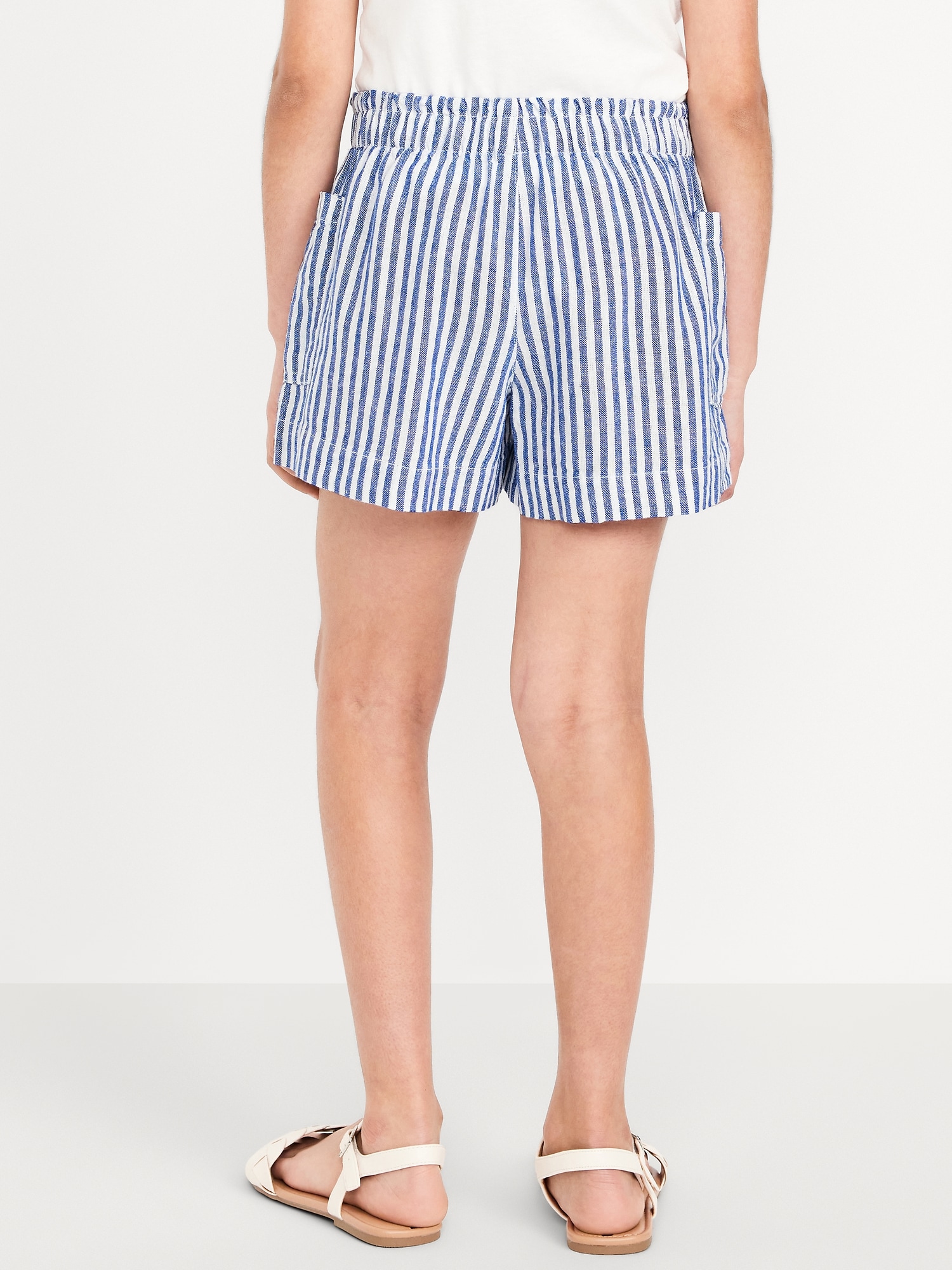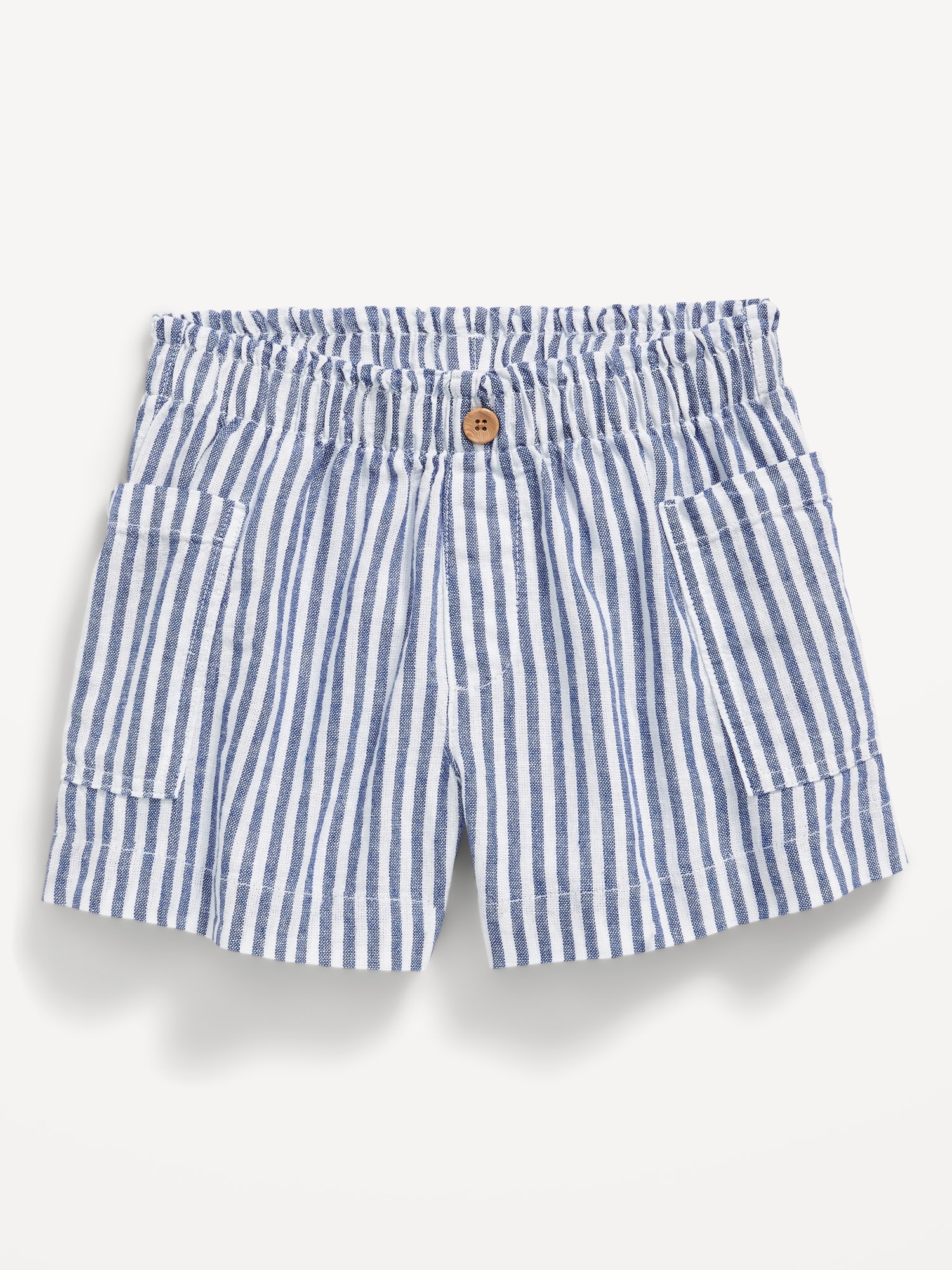Printed Linen-Blend Utility Shorts for Girls: elasticized waistband, decorative button front, utility patch pockets at each side, all-over print, #767129