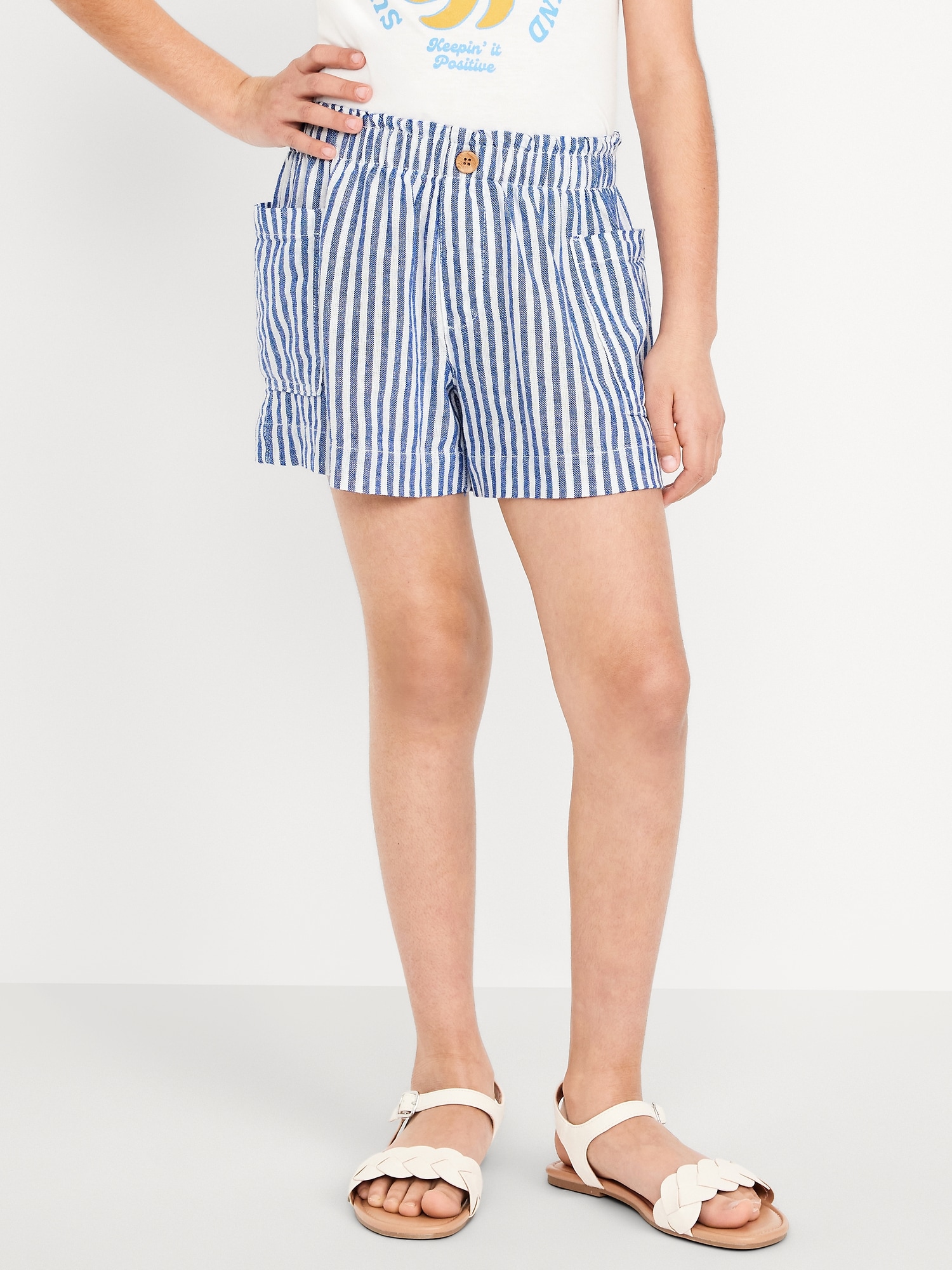 Printed Linen-Blend Utility Shorts for Girls: elasticized waistband, decorative button front, utility patch pockets at each side, all-over print, #767129