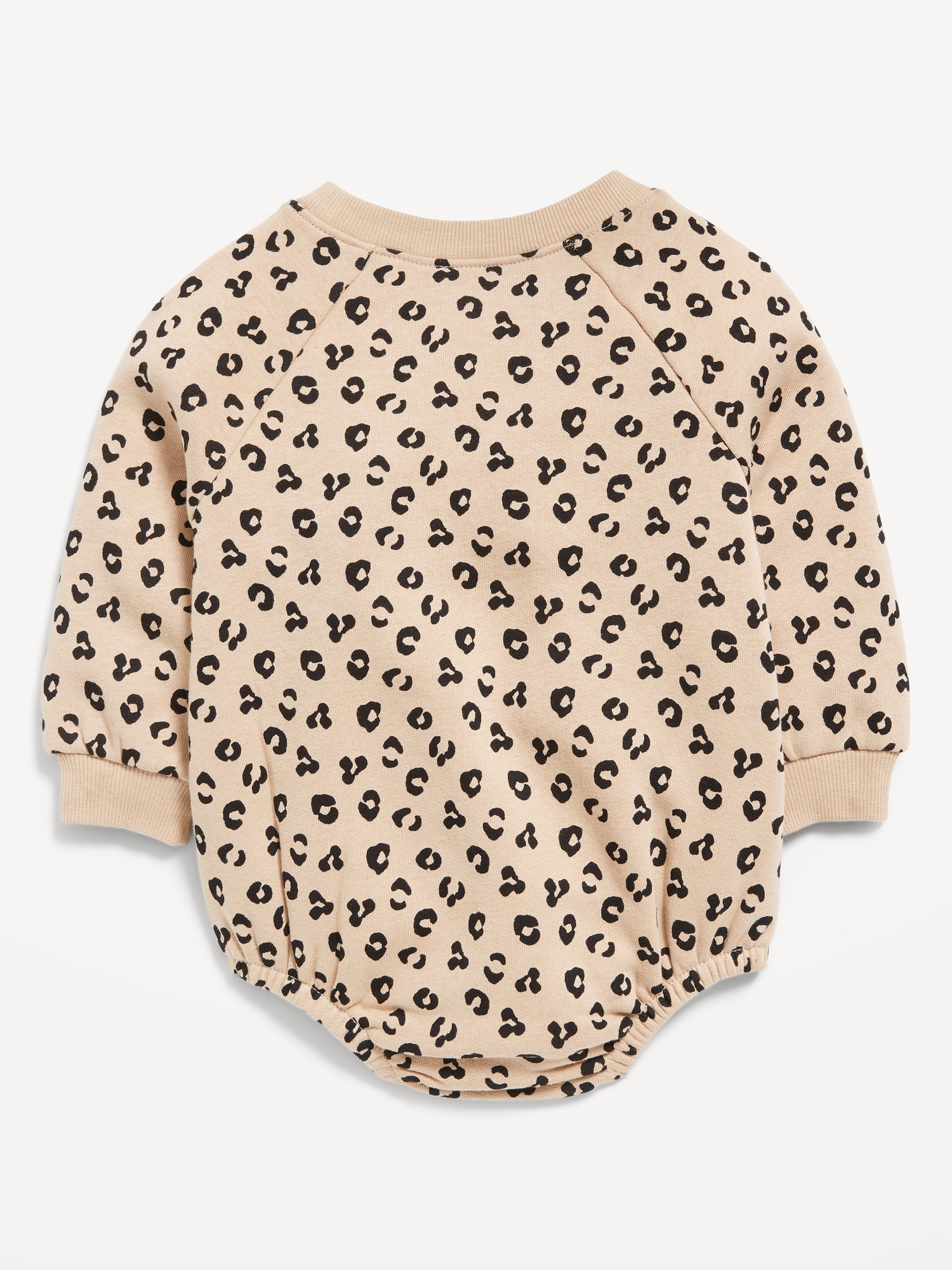 Printed Long-Sleeve Fleece One-Piece Romper for Baby: crew neck, long raglan sleeves, elasticized bubble leg openings, hidden snaps along inseam, all-over print, #802253