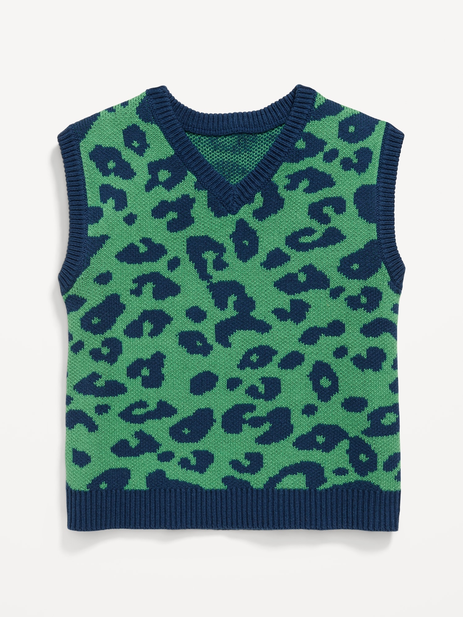 Printed Oversized Sweater Vest for Toddler Boys: v neck, sleeveless, ribbed neckline, cuffs and hem, all-over print, #750692