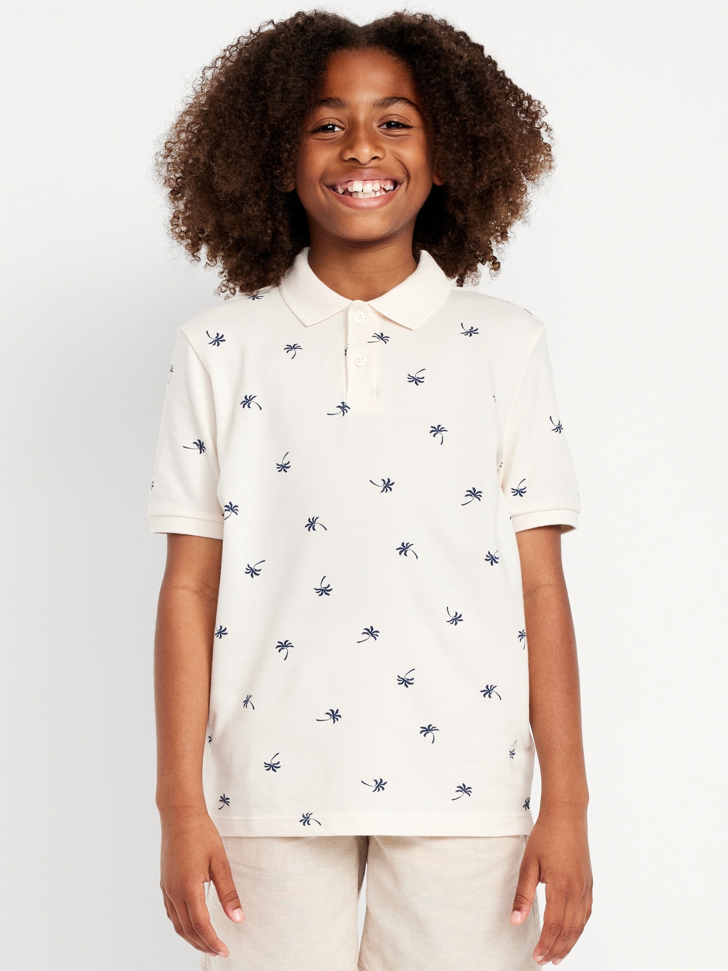Printed Pique Polo Shirt for Boys: rib-knit collar, short sleeves, two-button placket, all-over print, #858468