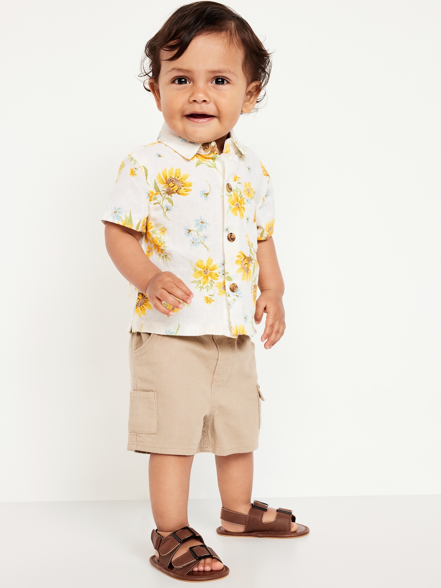 Printed Short-Sleeve Linen-Blend Shirt for Baby