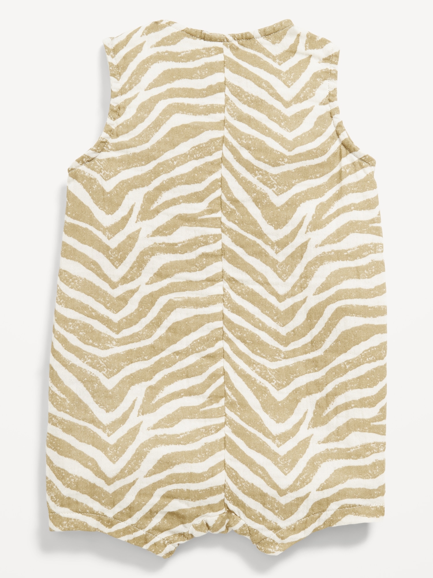 Printed Sleeveless Double-Weave Henley One-Piece Romper for Baby