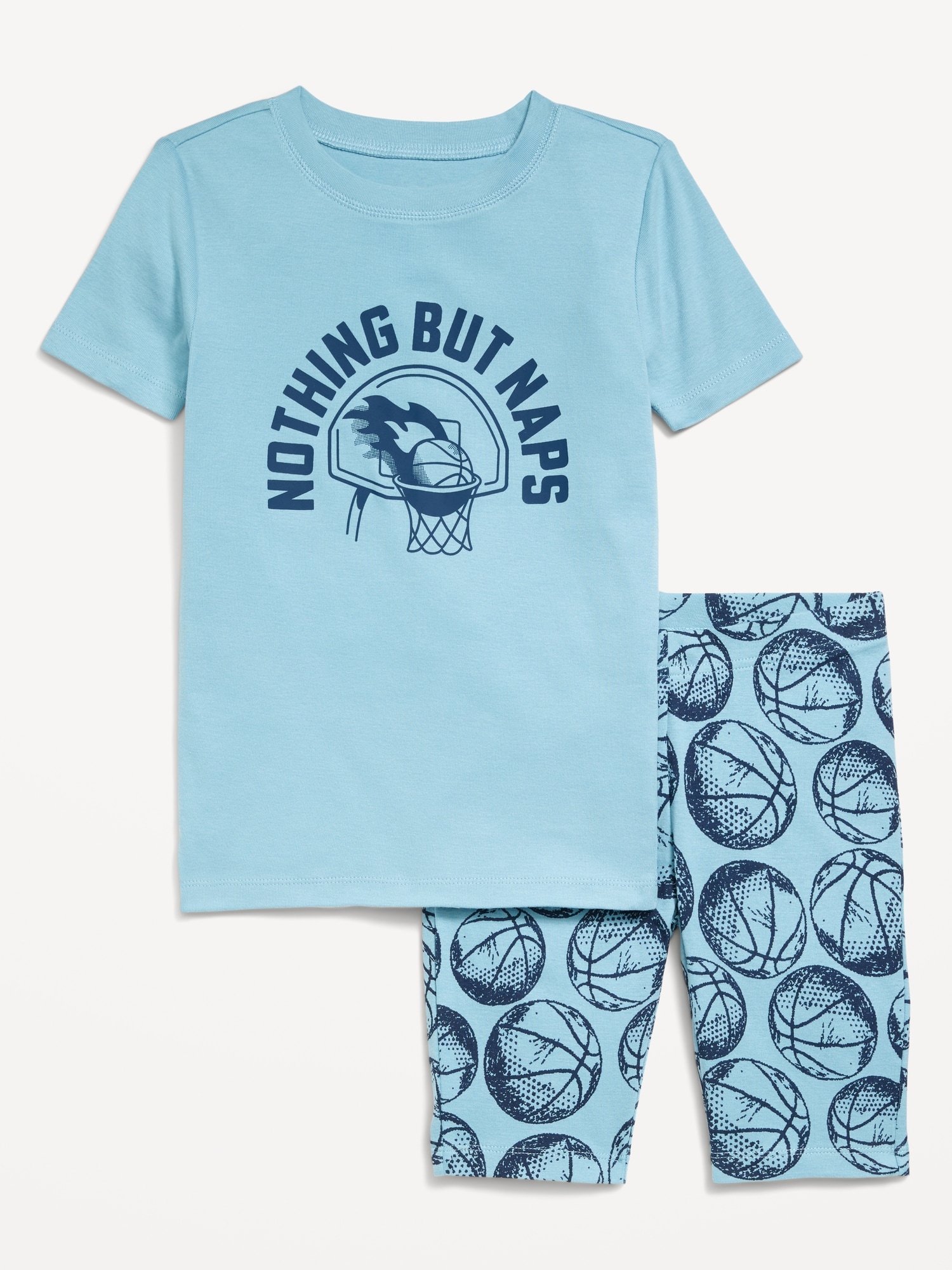 Printed Snug-Fit Pajama Set for Boys: crew neck, short sleeves, matching pajama shorts, elasticized waistband, all-over print, #744977