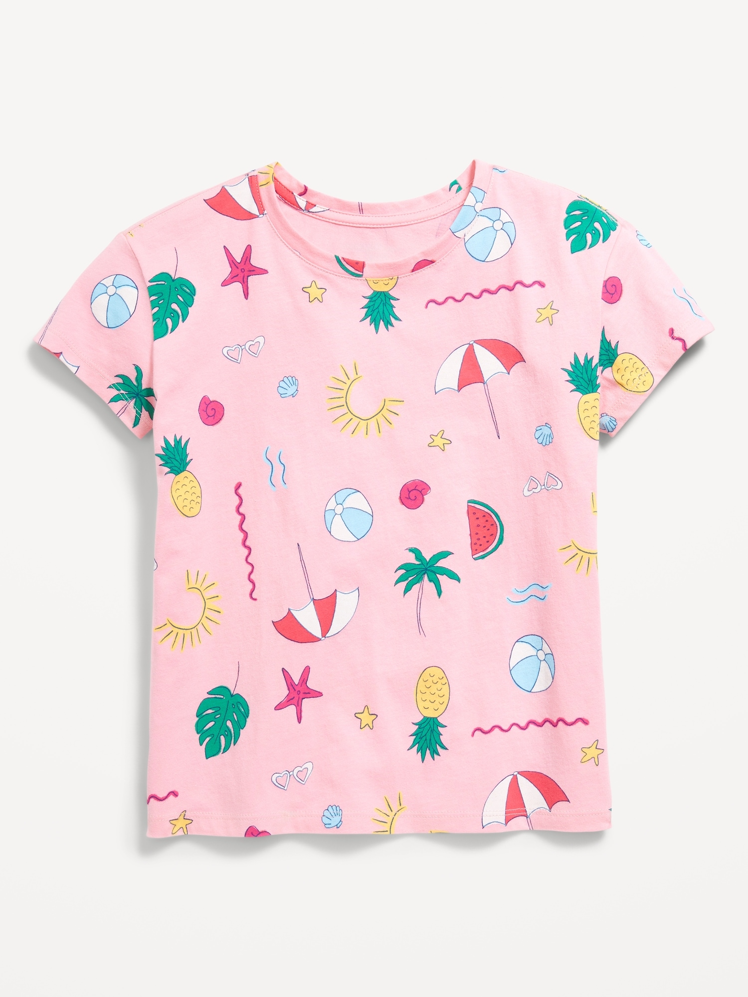 Printed Softest Short-Sleeve T-Shirt for Girls: scoop neck, short sleeves, drop shoulders, all-over print, #766957