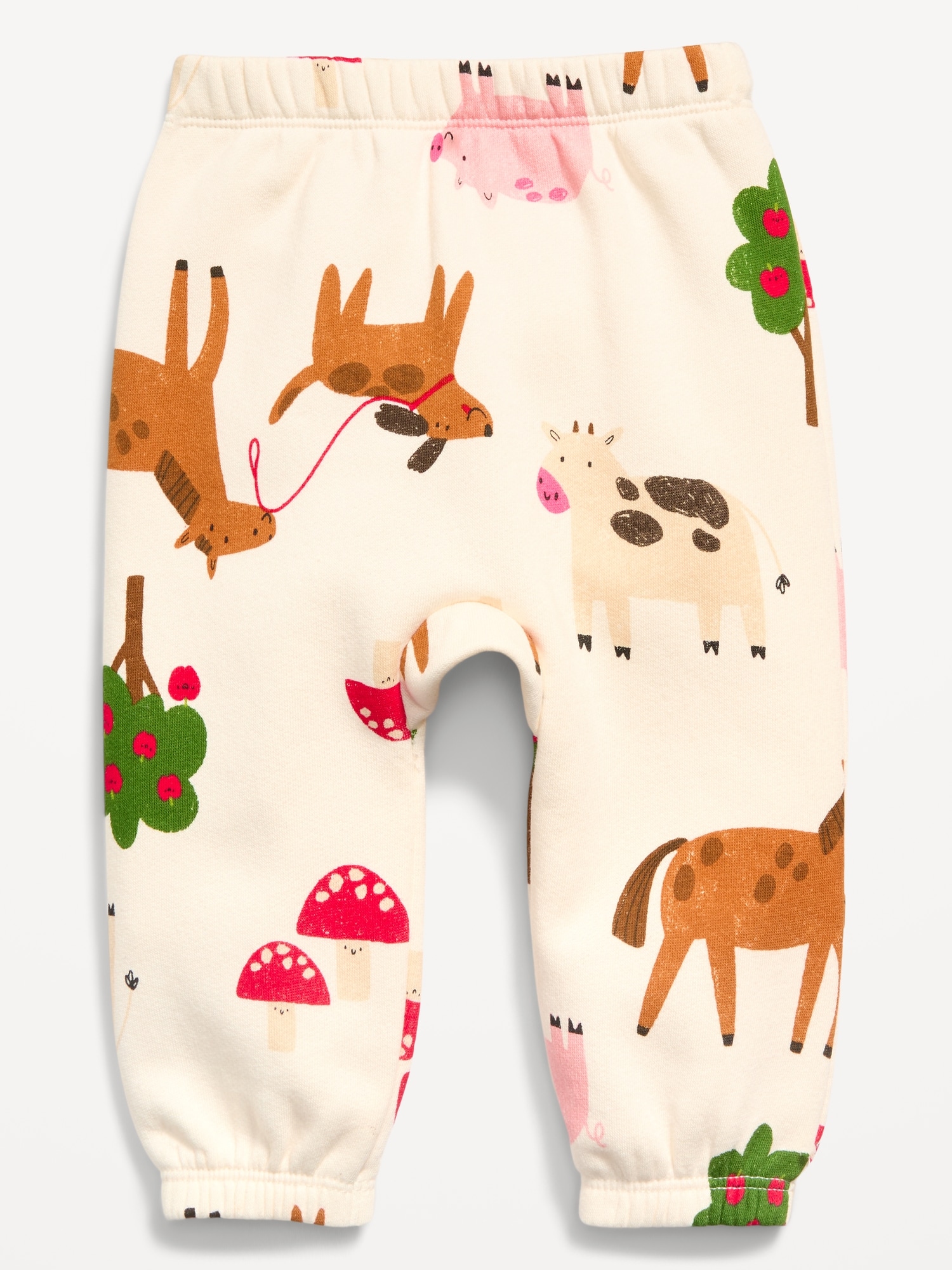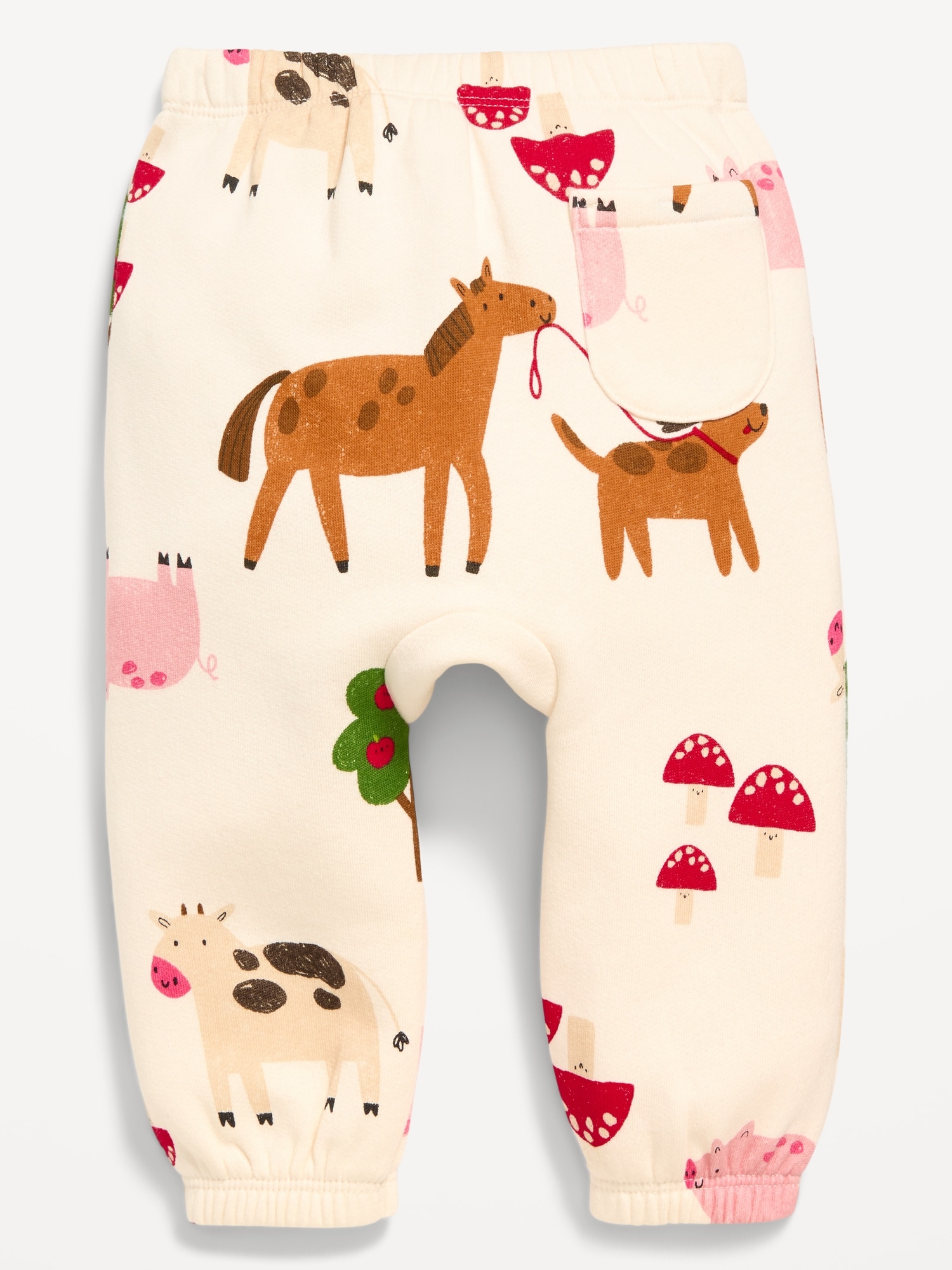 Printed Sweatpants for Baby: elasticized waistband, patch pocket at back, knee patches, elasticized leg cuffs, easy pull-on style, #802715