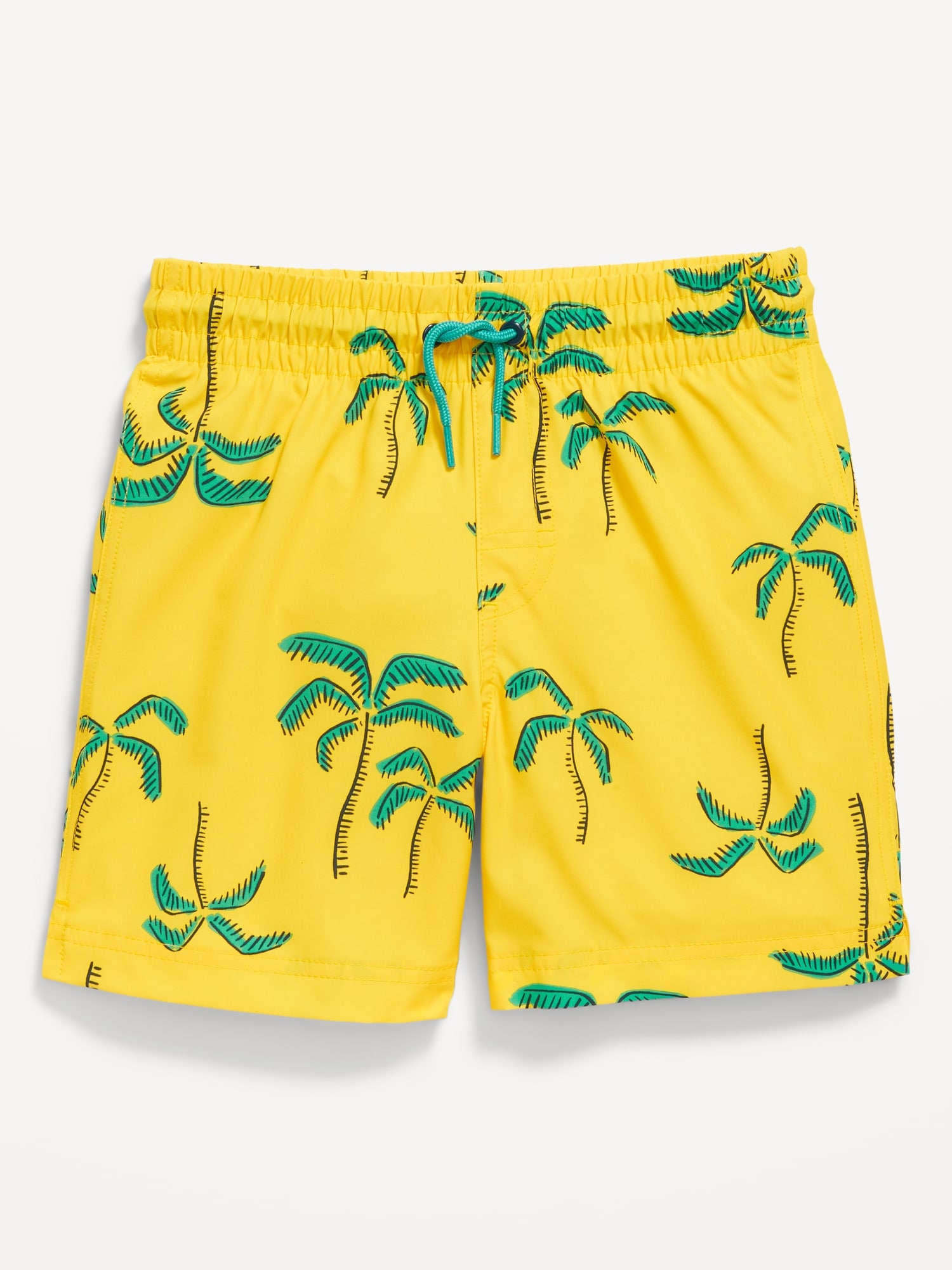 Printed Swim Shorts for Boys: elasticized waistband, adjustable drawstring, faux fly, patch pocket at back right, built-in mesh briefs, #861691