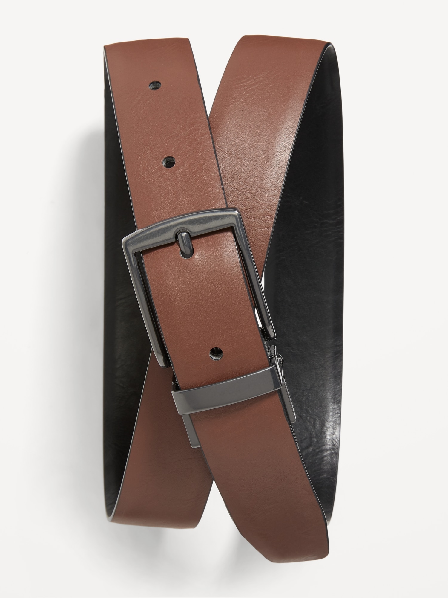 Reversible Belt for Boys: Reversible faux-leather belt is black on one side and dark brown on the other., Metal buckle., #621665