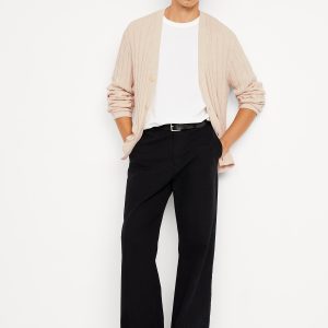 Ribbed Button-Front Cardigan: v-neck, long sleeves, four-button front, #791324