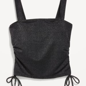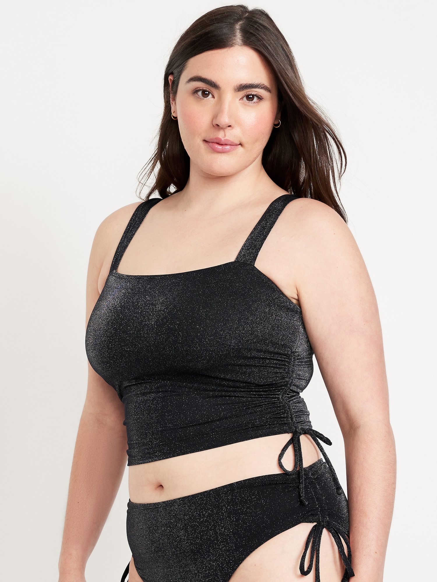 Ruched Longline Shine Swim Top: wide straps, removable pads, ruched sides, side-tie hem, why blend in when you can shine?, #660893