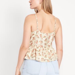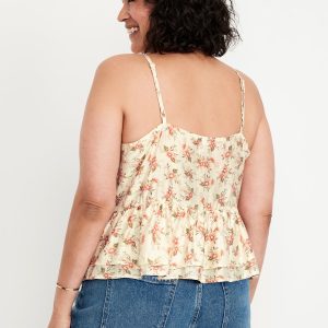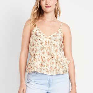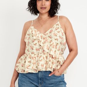 Ruffle Cami Top: v-neck, adjustable spaghetti straps, front ruffle trim, shirred peplum hem, #805745