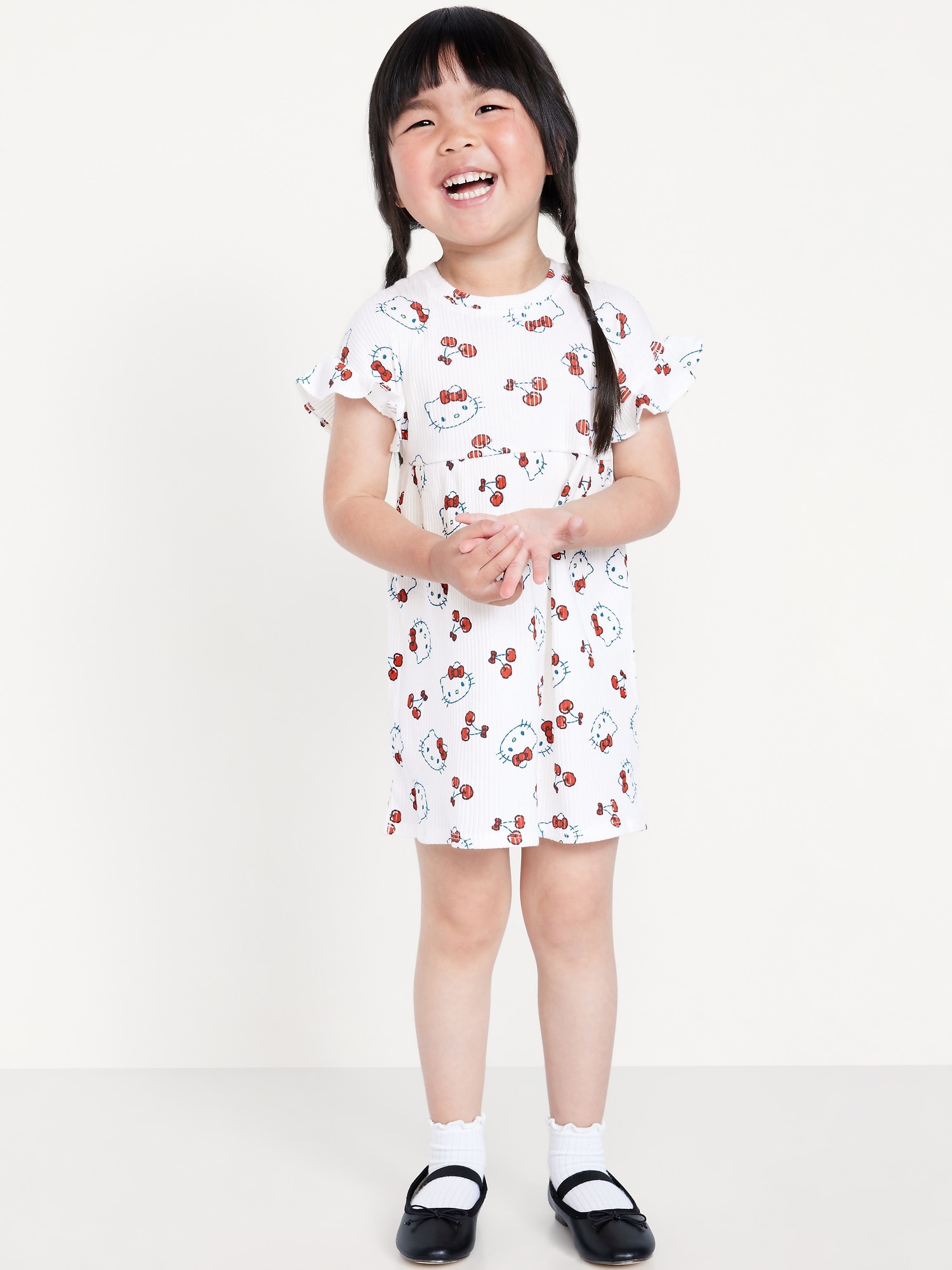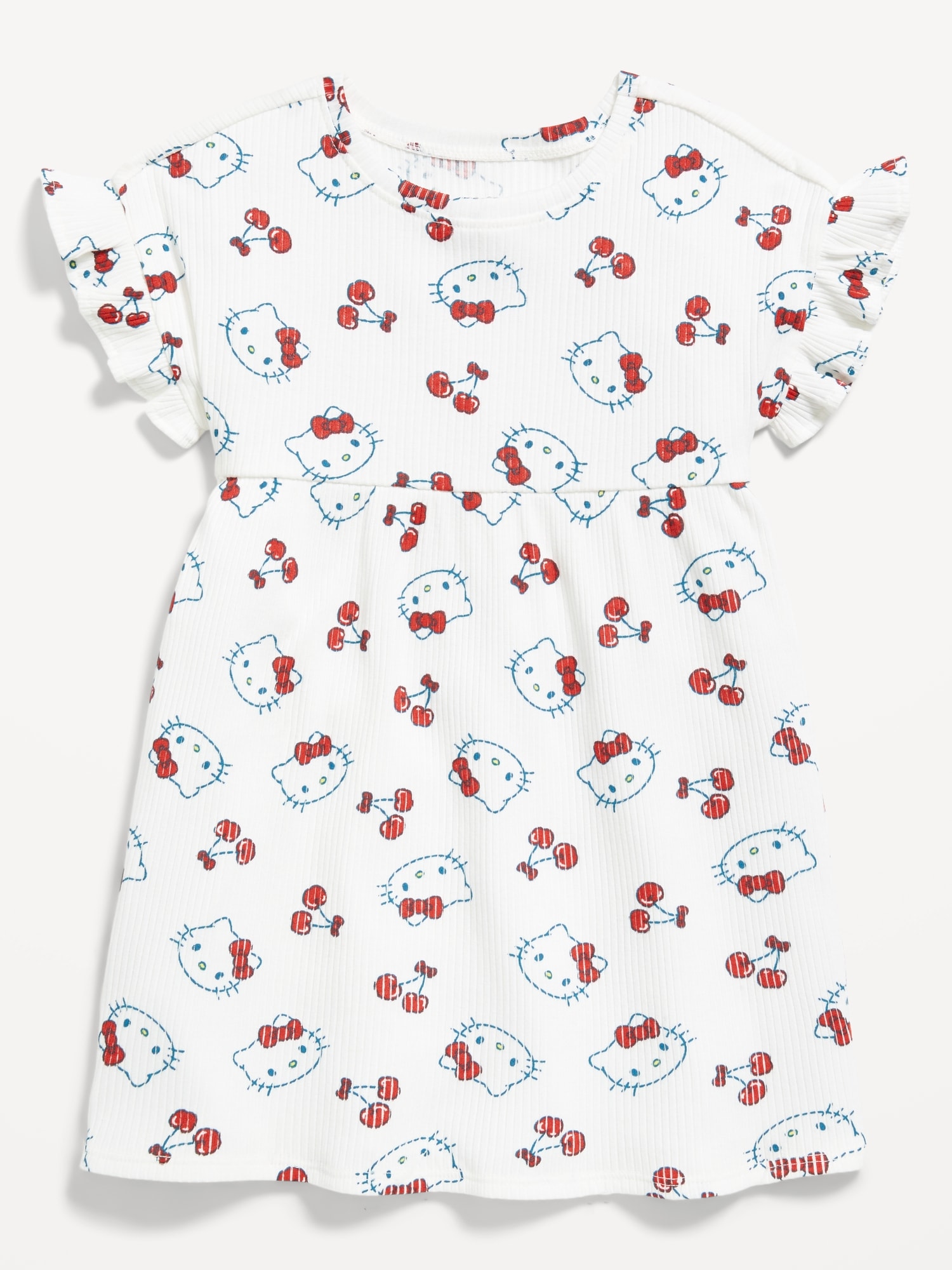 Ruffle-Sleeve Licensed Graphic Dress for Toddler Girls: crew neck, short ruffled sleeves, seamed waist, all-over licensed graphic, BLUEY™ and character logo™ and © Ludo Studio. Licensed by BBC Studios Distribution Ltd., © 2025 SANRIO CO. LTD. Used Under License., ©2025 Mattel, online exclusive, #766771