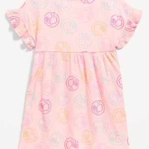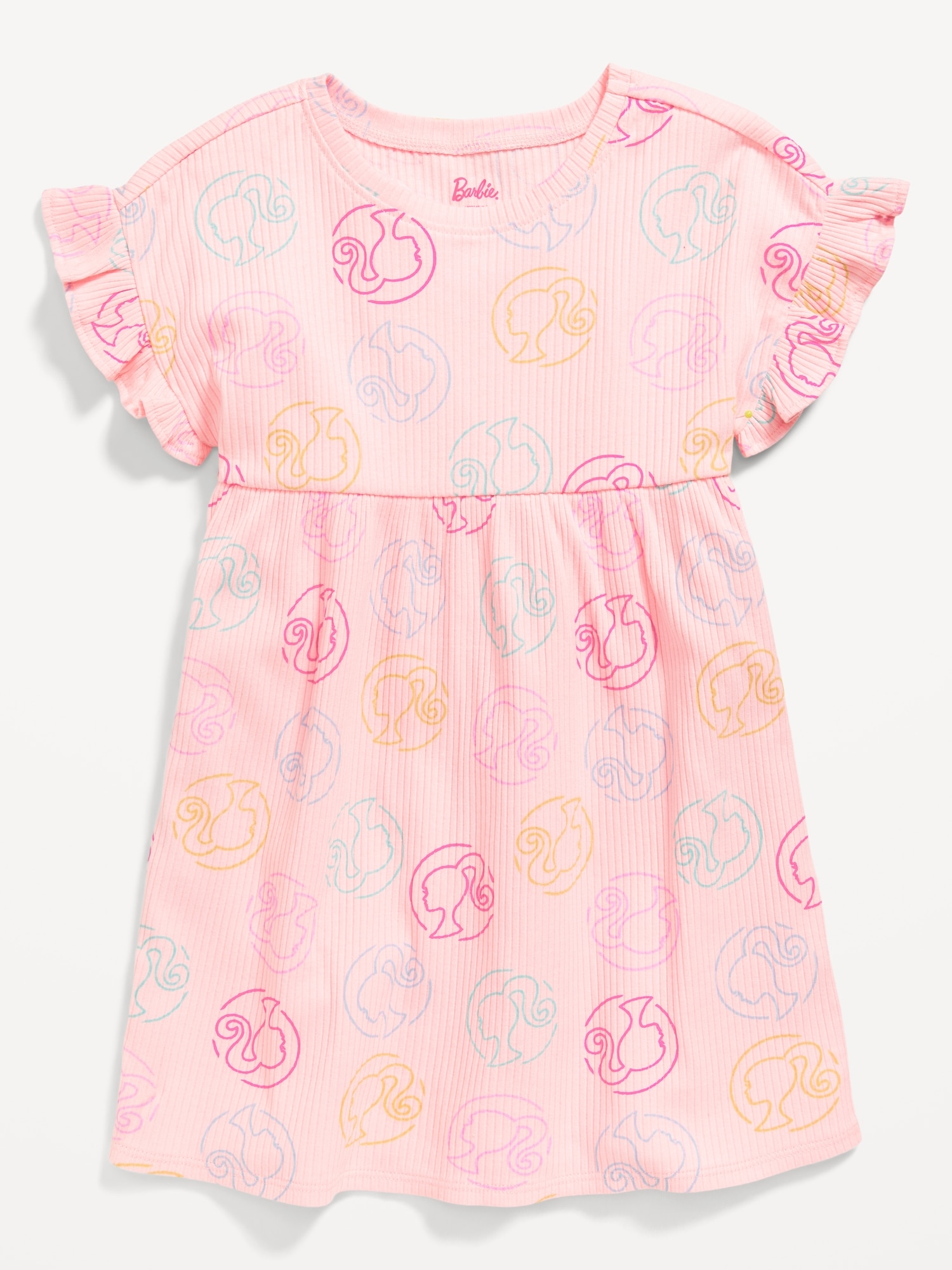 Ruffle-Sleeve Licensed Graphic Dress for Toddler Girls: crew neck, short ruffled sleeves, seamed waist, all-over licensed graphic, BLUEY™ and character logo™ and © Ludo Studio. Licensed by BBC Studios Distribution Ltd., © 2025 SANRIO CO. LTD. Used Under License., ©2025 Mattel, online exclusive, #766771
