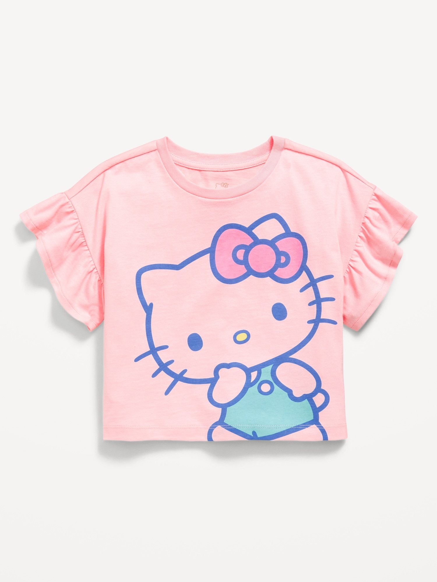 Ruffle-Sleeve Licensed Graphic T-Shirt for Toddler Girls: crew neck, short ruffled sleeves, all-over licensed graphic, BLUEY™ and character logo™ and © Ludo Studio. Licensed by BBC Studios Distribution Ltd., © 2025 SANRIO CO. LTD. Used Under License., #762103