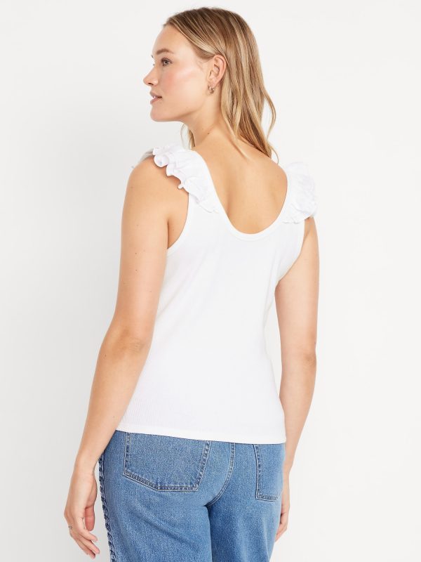 Ruffle-Trim Mixed Material Top: v-neck, ruffled sleeve openings, #686637