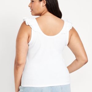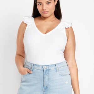 Ruffle-Trim Mixed Material Top: v-neck, ruffled sleeve openings, #686637