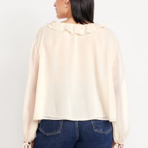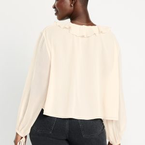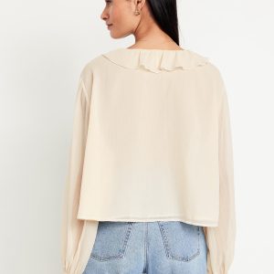 Ruffled Chiffon Cropped Blouse