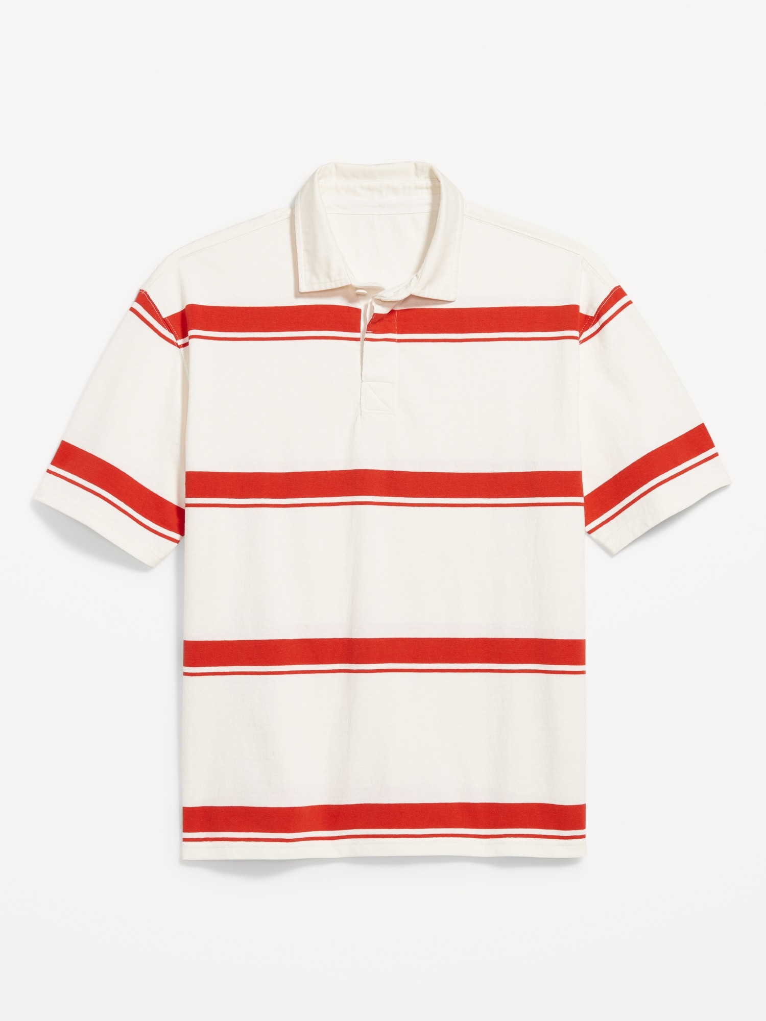 Rugby Stripe Polo: spread collar, short sleeves, buttoned placket, contrasting rugby-style stripes, vented sides, #762339