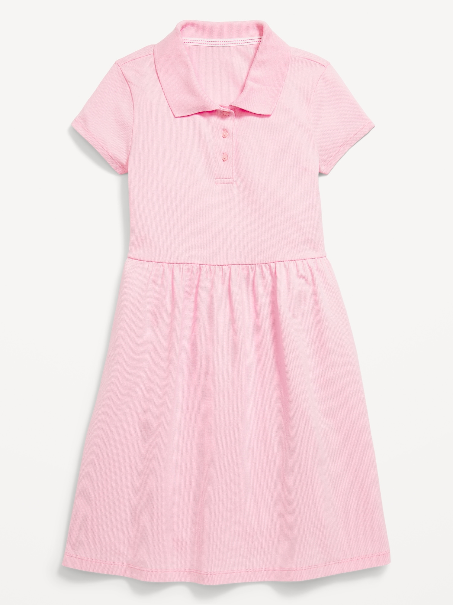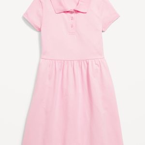 School Uniform Fit and Flare Pique Polo Dress for Girls
