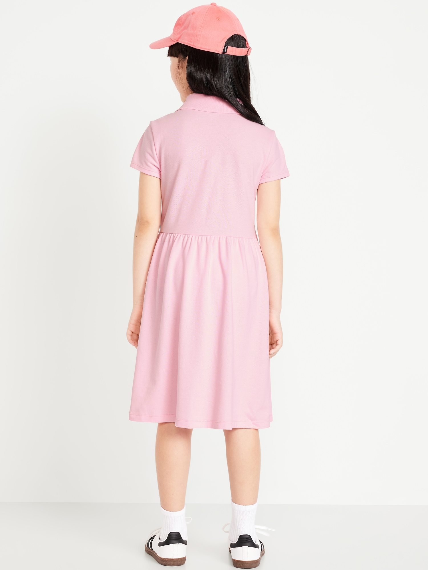 School Uniform Fit and Flare Pique Polo Dress for Girls