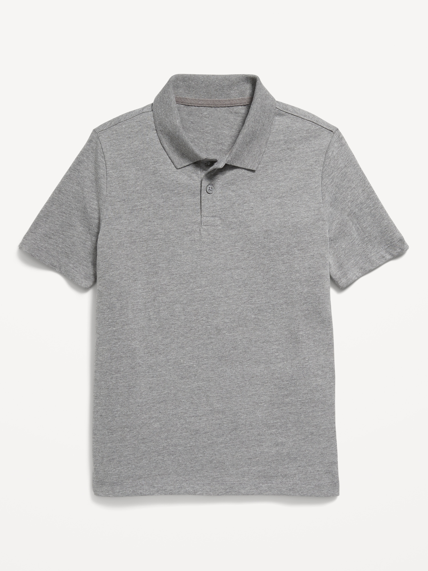 School Uniform Jersey Polo Shirt for Boys: rib-knit collar, two-button placket, short sleeves, #621877