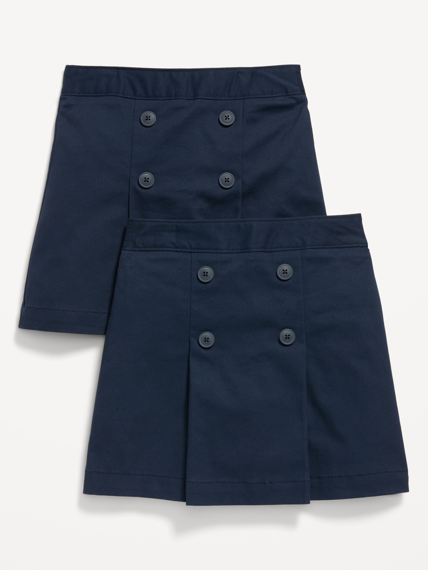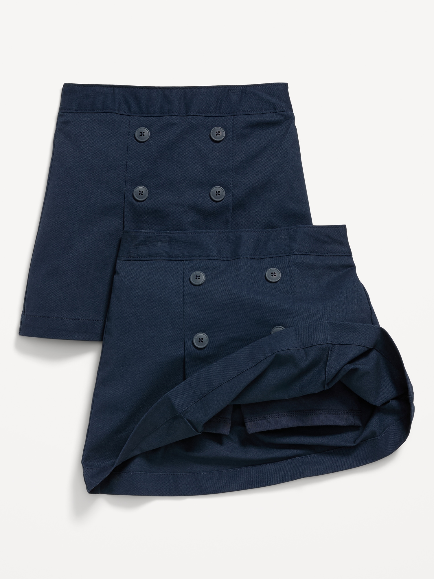 School Uniform Pleated Skort 2-Pack for Girls: built-in shorts, elasticized waistband, decorative buttons at front, #766637