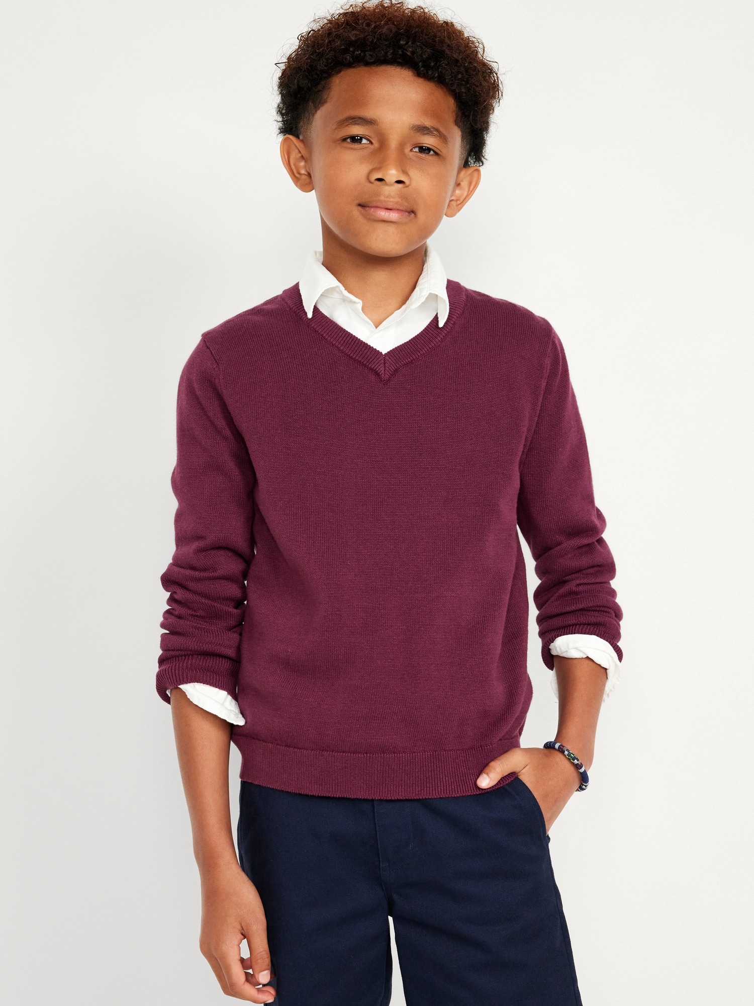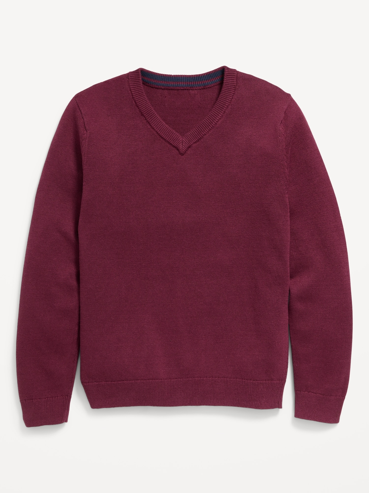 School Uniform Solid V-Neck Sweater for Boys: Uniform Guarantee: Uniforms may be returned for a full refund with the original receipt for 365 days from the date of purchase.rib-knit v-neck, long sleeves, online exclusive, #599132